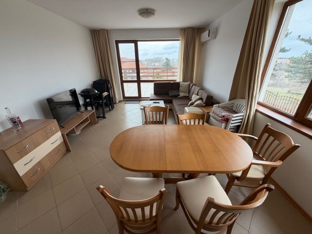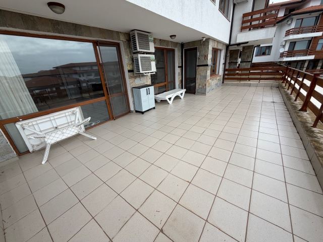 Nabízíme vám mimořádně atraktivní apartmán se dvěma ložnicemi o ploše 96.84 m² s obrovskou terasou, umístěný ve druhém patře čtyřpatrové budovy, na okraji Slunečného pobřeží, v blízkosti hypermarketu Lidl. Nemovitost spojuje prostornost, funkčnost a klidné prostředí, což z ní činí výbornou volbu jak pro osobní využití, tak pro investici. Apartmán je plně zařízený a připravený k nastěhování, což vám šetří čas i další náklady. Dispozice nabízí pohodlí a praktičnost – světlou denní zónu s místem pro odpočinek a stolování, dvě samostatné ložnice s přímým vstupem na působivou terasu, koupelnu s toaletou. Venkovní prostor je skutečným klenotem této nemovitosti a nabízí možnost vytvořit relaxační kout, grilovací zónu, venkovní jídelnu nebo dokonce vířivku. Je to místo, které promění každý letní den v potěšení.