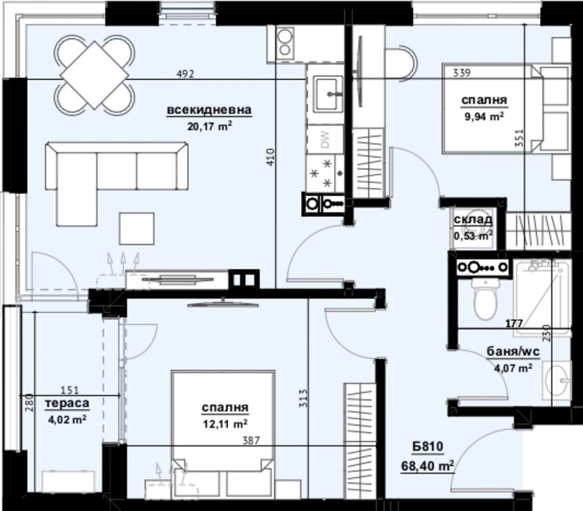 Nabízíme vám moderní byt se dvěma ložnicemi o celkové ploše 78,63 m², který se nachází v osmém patře luxusní inovativní nové budovy v čtvrti Horizont ve městě Burgas. Nový komplex Deluxe Residence, Fitness & Spa rozšíří koncept kvalitního městského bydlení, výrazně zvýší standard díky eleganci a luxusu. Budova zaujme elegantním architektonickým designem a prestižním moderním vzhledem. Kombinace kompozitních keramických panelů v bílých a grafitových tónech, matného dřevěného dekoru a kovových a skleněných akcentů dodá exteriéru mimořádně sofistikovaný vzhled, který se promítne i do interiéru díky působivě provedeným společným prostorám.
