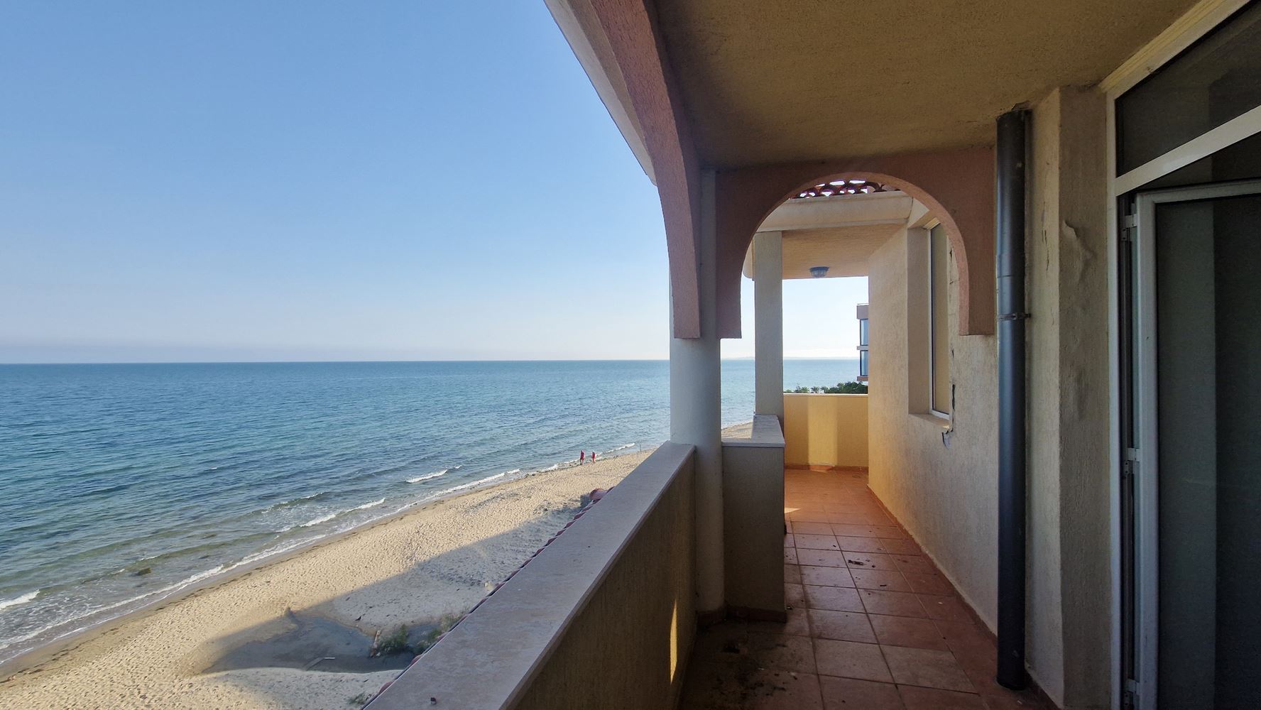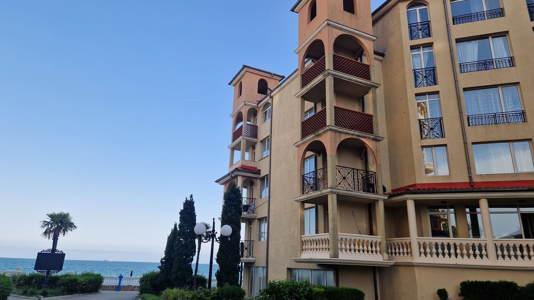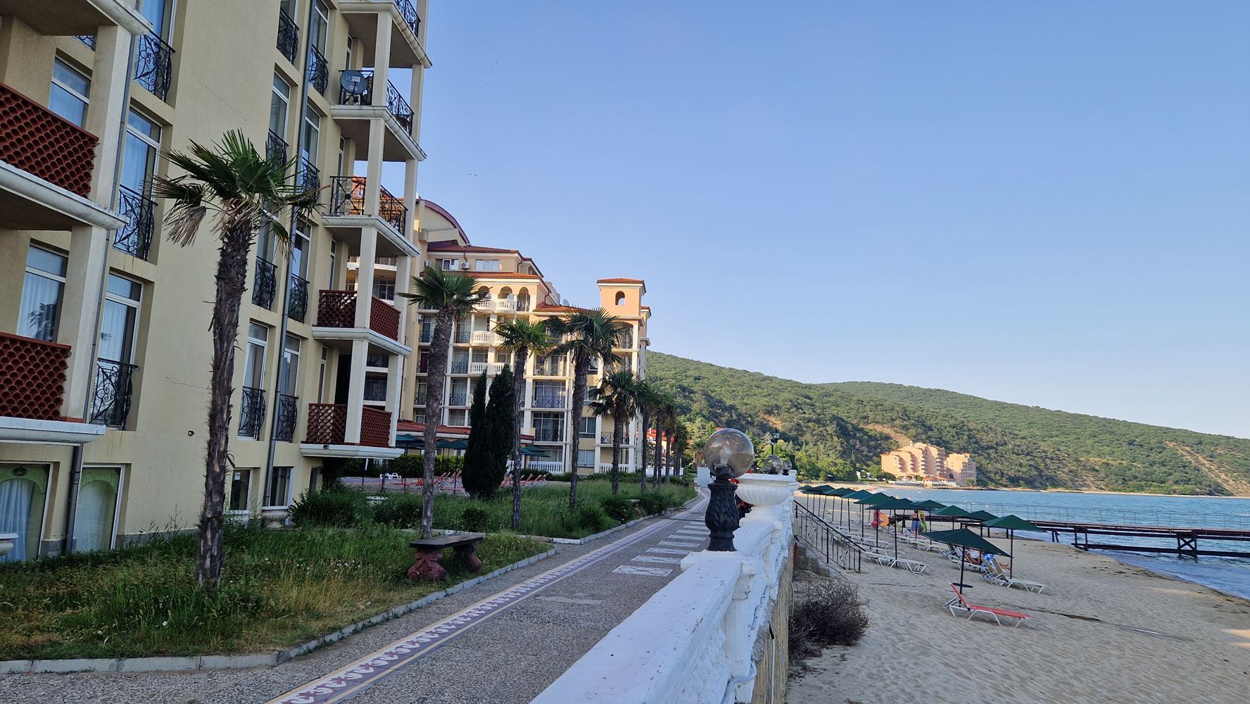 Nabízíme mimořádně atraktivní dvoupokojový apartmán, nacházející se v první linii u moře v prestižním resortu Elenite. Nemovitost nabízí vzácnou výhodu – terasu s přímým výhledem na moře, která vytváří pocit absolutní blízkosti moře a skutečné dovolenkové atmosféry.