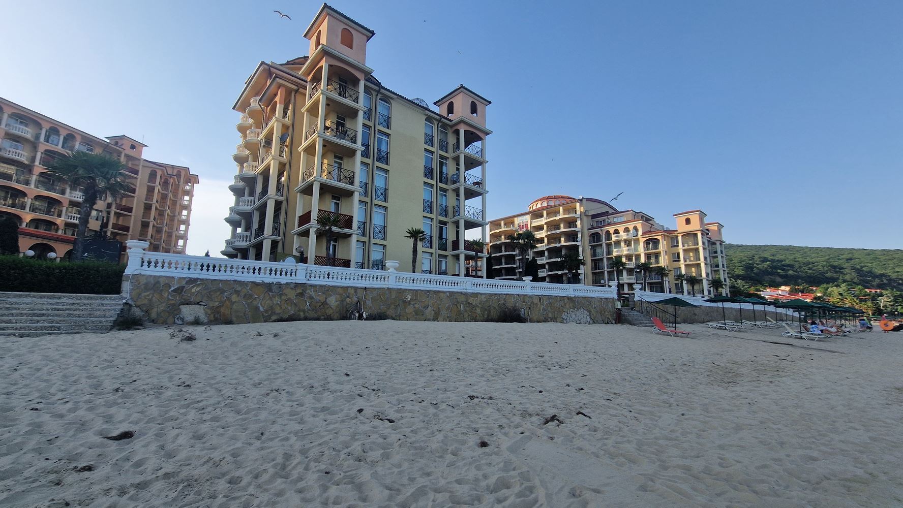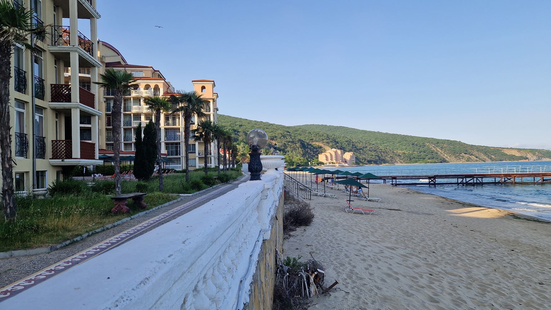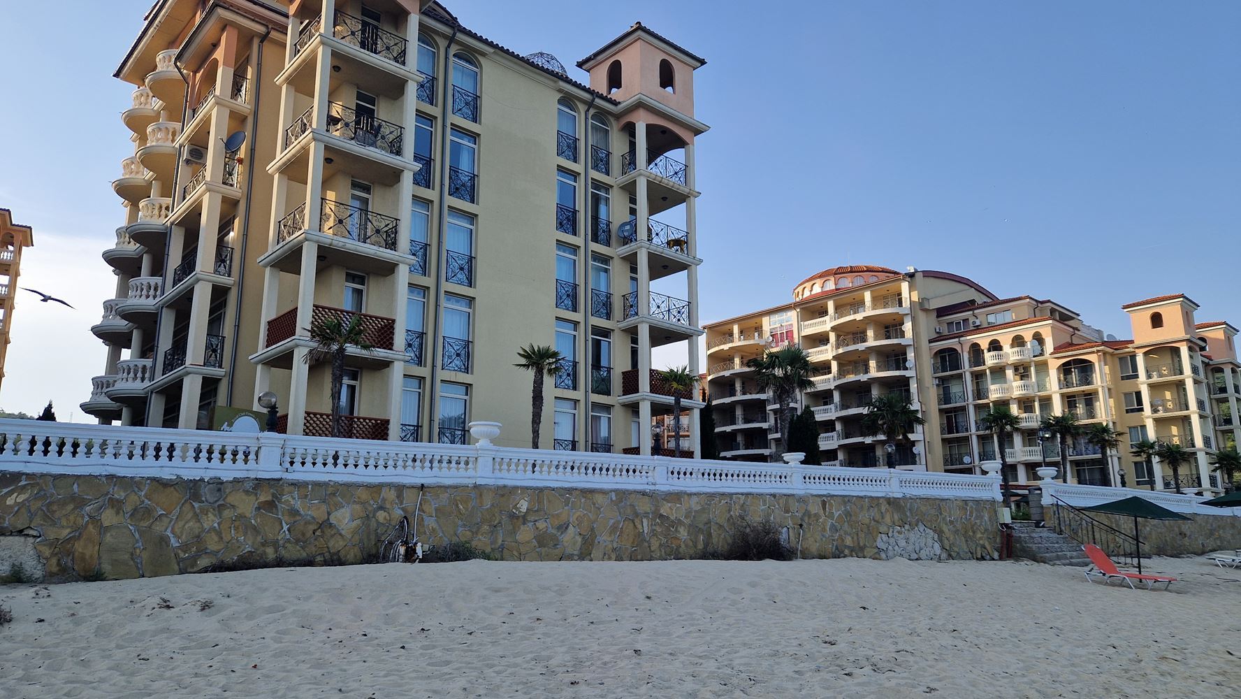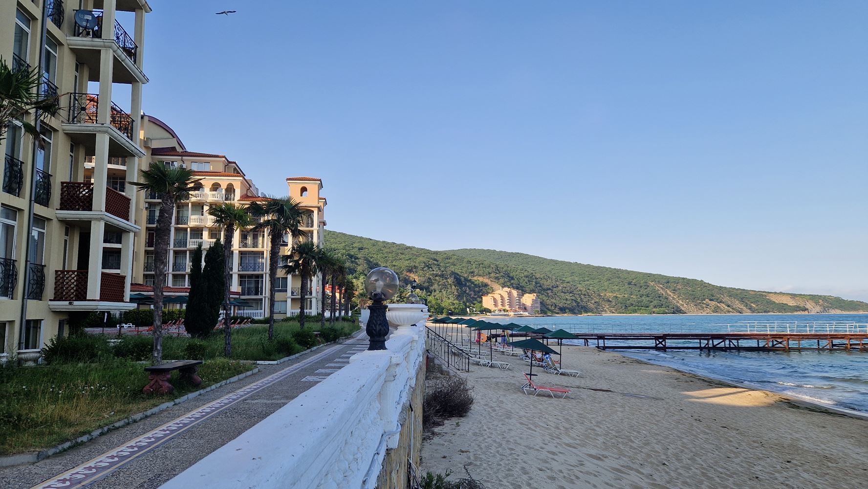 Nabízíme mimořádně atraktivní dvoupokojový apartmán, nacházející se v první linii u moře v prestižním resortu Elenite. Nemovitost nabízí vzácnou výhodu – terasu s přímým výhledem na moře, která vytváří pocit absolutní blízkosti moře a skutečné dovolenkové atmosféry.