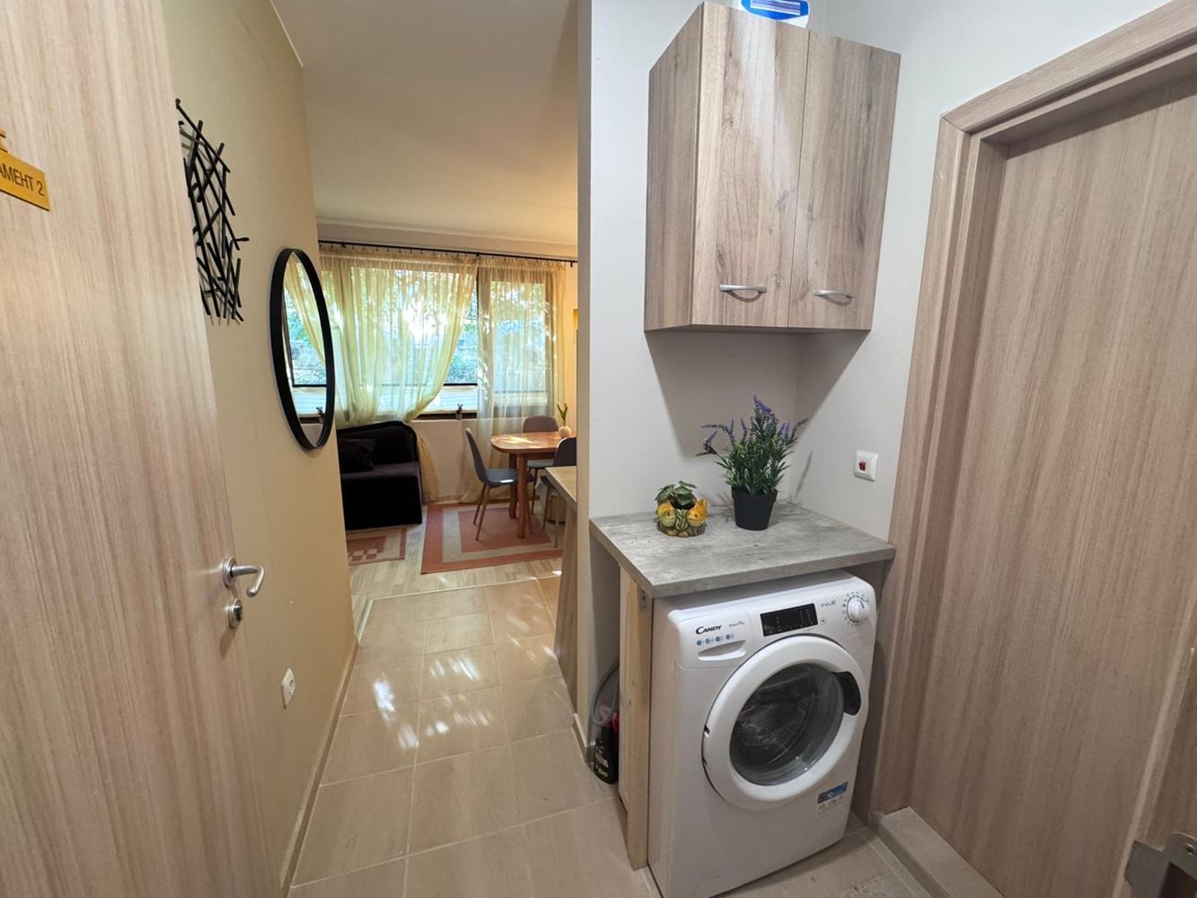 Skutečným lákadlem je poloha: byt se nachází jen pár kroků od hlavní nákupní ulice v Ravdě, kde najdete řadu obchodů, kaváren a lékáren. V blízkosti je pohodlný přístup k veřejné dopravě, což usnadňuje cestování do Nessebar, Slunečného břehu a Burgasu. Oblast je tichá a klidná, s rozvinutou infrastrukturou – ideální podmínky pro pohodlné a bezproblémové celoroční bydlení.