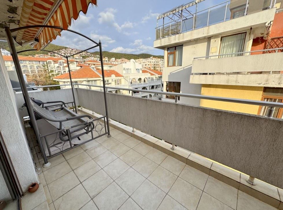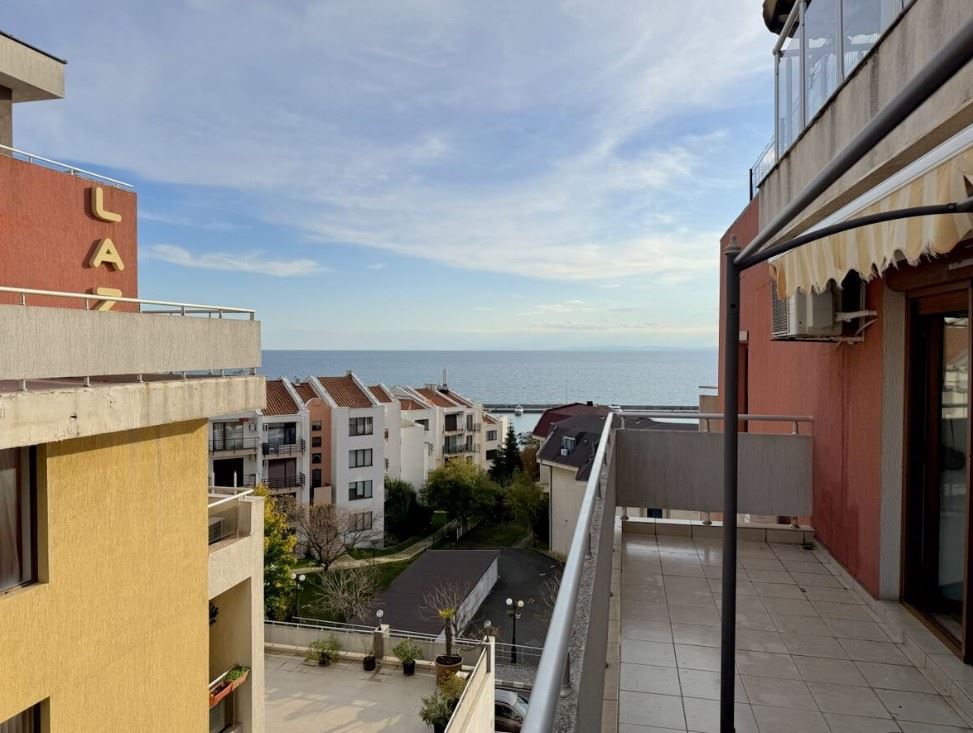 Nabízíme k prodeji dvoupokojový byt o rozloze 55 m2, umístěný ve čtvrtém (ne nejvyšším) patře moderního komplexu ve Sveti Vlas. Byt zaujme krásným výhledem na moře, který si můžete vychutnat z terasy, což proměňuje každé ráno a večer v opravdové potěšení. Byt je plně vybavený, připravený k okamžitému nastěhování nebo k pronájmu, kombinující komfort, praktičnost a styl.