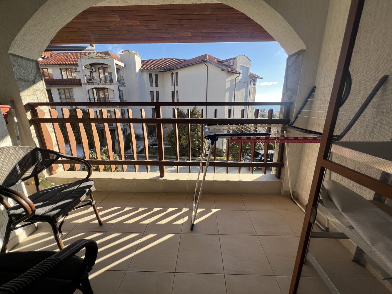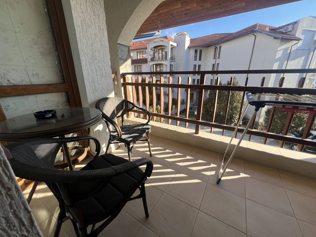 Představujeme vám prostorný a stylově zařízený byt se dvěma ložnicemi, nacházející se v jednom z nejprestižnějších komplexů ve Sveti Vlas, pouhých 300 metrů od moře a známého jachetního přístavu. Lokalita spojuje klid přímořského letoviska s blízkostí všech služeb, které činí život u moře pohodlným a příjemným. Komplex zaujme svou jedinečnou architekturou inspirovanou tradičním bulharským stylem, kde přírodní kámen, dřevěné prvky a klasická červená tašková střecha vytvářejí harmonii a atmosféru útulnosti a elegance. Kolem budov jsou bohatě upravené zahrady, promenádní aleje a četné zóny pro odpočinek, které vytvářejí pocit klidu a rekreačního komfortu.