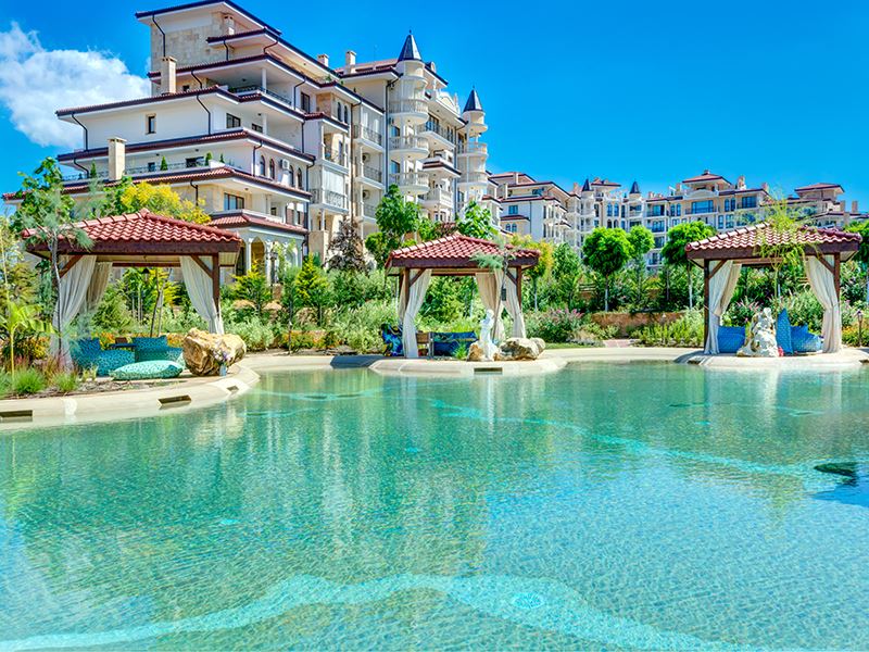 Nemovitost se nachází v udržovaném a zabezpečeném areálu, bohatě upraveném malebnými zahradami, okrasnými rostlinami a drobnými architektonickými prvky. Komplex nabízí dobře rozvinutou infrastrukturu, která plně odpovídá potřebám obyvatel a je určena pro celoroční bydlení. Majitelé mají k dispozici širokou škálu služeb a prvotřídní servis, díky nimž se každodenní život stává skutečným potěšením.