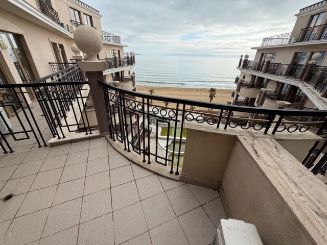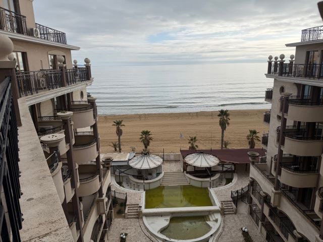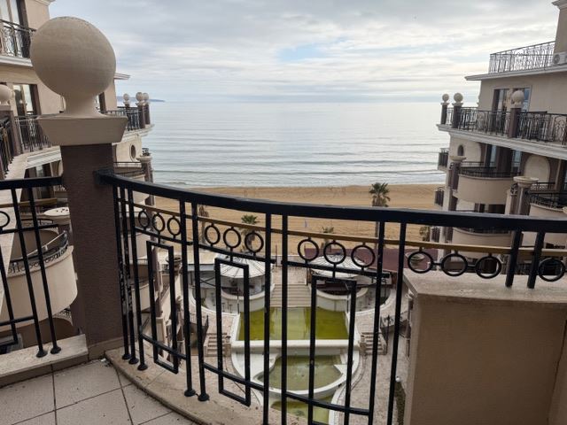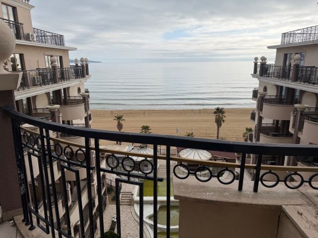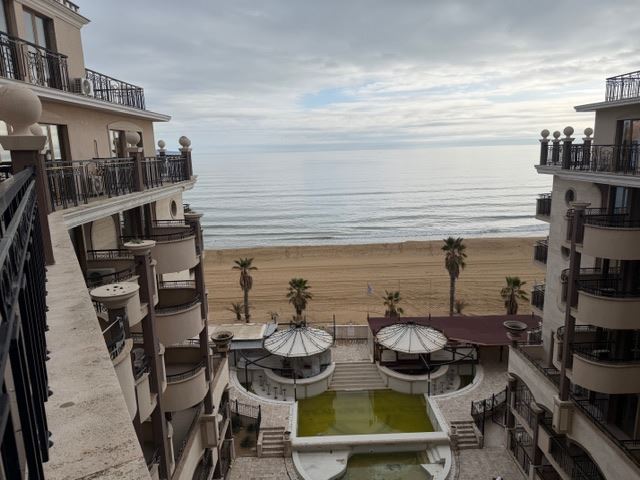 Představujeme velmi prostorný třípokojový apartmán s frontálním výhledem na moře, který se nachází na první linii v jednom z nejprestižnějších komplexů na Slunečném pobřeží. Nemovitost má celkovou plochu 108,96 m² a nachází se na sedmém patře z osmi, což zaručuje nepřerušený panoramatický výhled, klid a pocit prostornosti.