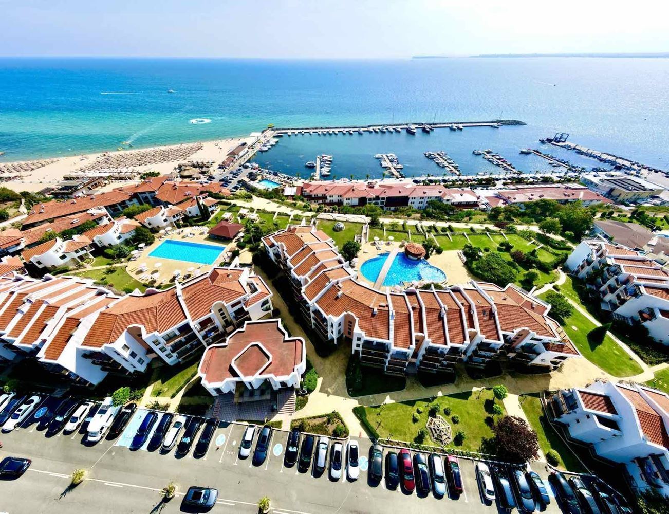 Komplex nabízí širokou škálu vybavení, včetně bazénu a dětského bazénu, restaurace, kavárny, lobby baru, parkoviště a 24hodinové ostrahy, která zajišťuje bezpečnost a pohodlí obyvatel. Nenechte si ujít příležitost stát se majitelem tohoto krásného apartmánu, který kombinuje pohodlí, luxus a nepřekonatelný výhled na moře.