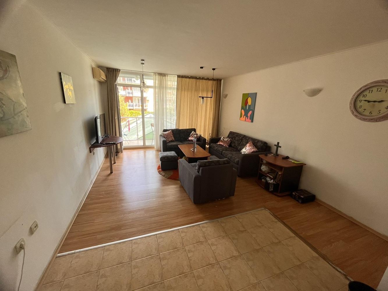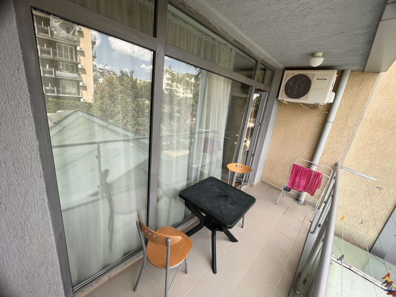 Prostorný dvoupokojový apartmán v malebném komplexu v Slunečném pobřeží nabízí skvělou kombinaci komfortu a útulnosti. Komplex se nachází 10 minut chůze od krásné pláže, což z něj činí ideální volbu pro milovníky blízkosti moře. Apartmán má rozlohu 96 m2 a nachází se ve druhém patře. Velká terasa potěší své obyvatele mnoha možnostmi.