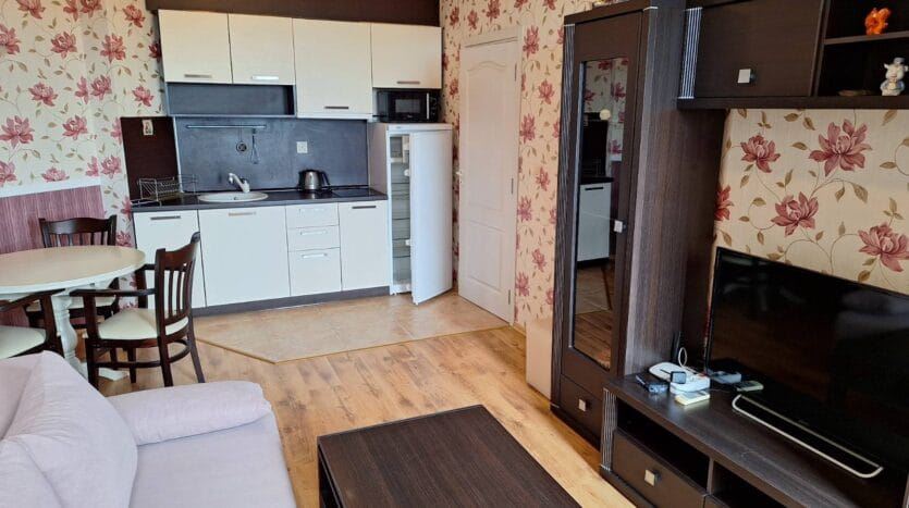 Představujeme apartmán s jednou ložnicí, umístěný ve čtvrtém patře dobře udržovaného komplexu v populárním přímořském letovisku Ravda. Nemovitost má celkovou zastavěnou plochu 54 m² a je nabízena plně zařízená a vybavená, připravená k okamžitému nastěhování nebo využití jako rekreační nemovitost. Hlavním prvkem apartmánu je útulná terasa s krásným výhledem, která poskytuje klidné a příjemné místo pro odpočinek, relaxaci nebo večerní setkání na čerstvém vzduchu.