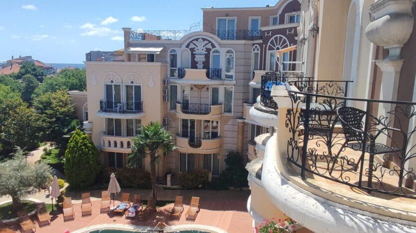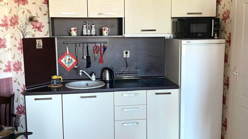Poloha apartmánu je mimořádně výhodná. Pouze 200–300 metrů odděluje nemovitost od moře a parku, což umožňuje rychlý a snadný přístup na pláž a k přírodě. V bezprostřední blízkosti se nachází banka, pošta, zdravotnické centrum, supermarket a autobusová zastávka, což poskytuje všechny nezbytné služby pro každodenní komfort. Oblast je tichá a klidná, daleko od hluku turistických ulic, což činí apartmán vhodným pro ty, kteří hledají klid, ale chtějí být blízko služeb resortu.