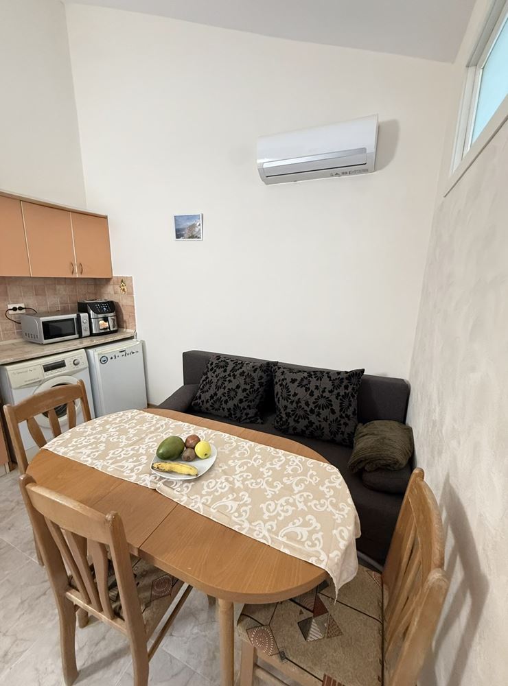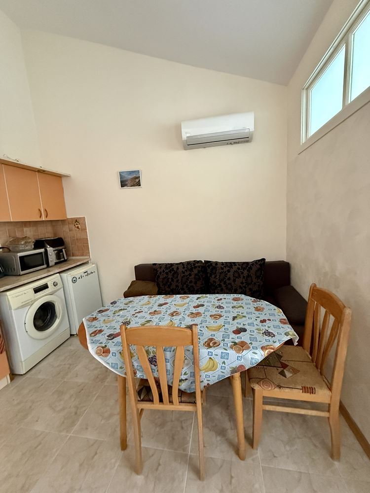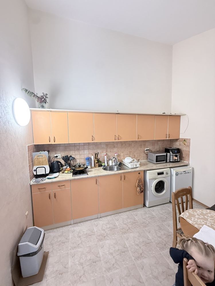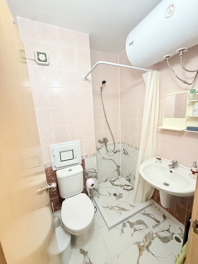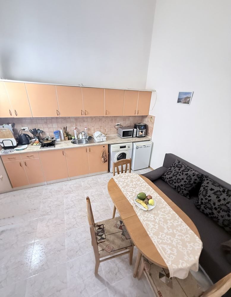 Představujeme prostorný byt s jednou ložnicí o ploše 62,74 m², nacházející se ve třetím patře ve velmi dobře udržovaném komplexu ve Slunečném pobřeží, pouhých 200 metrů od moře. Nemovitost je plně zařízená a nabízí útulné a funkční prostředí, vhodné jak pro vlastní bydlení, tak jako investici k pronájmu. Byt se vyznačuje praktickým uspořádáním, kde jsou kuchyň a jídelna odděleny, což přináší dodatečný komfort a praktičnost v každodenním životě. Prostorné místnosti jsou světlé a dobře organizované, což přispívá k pocitu útulnosti a klidu.