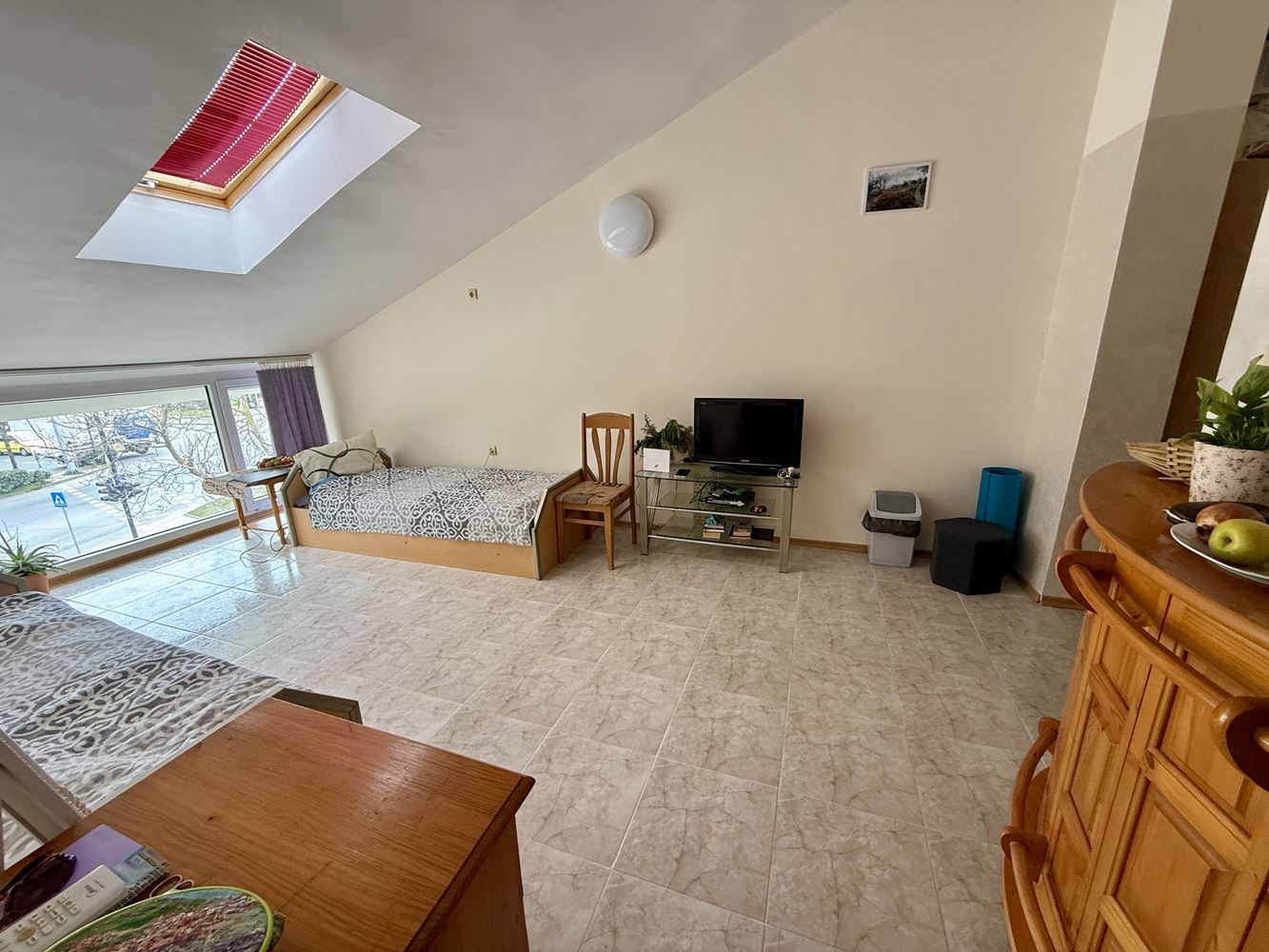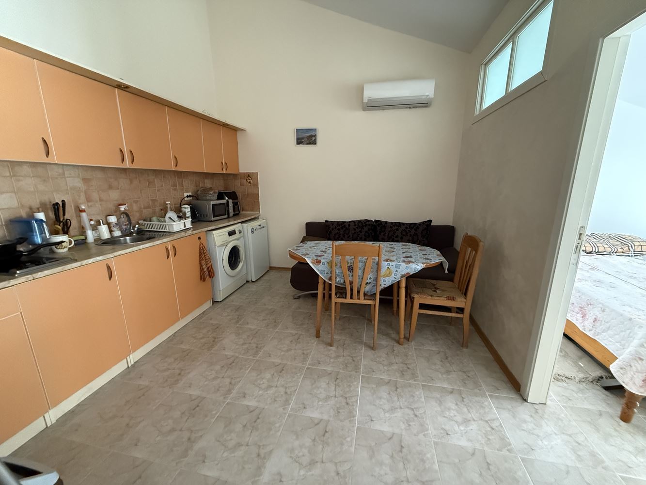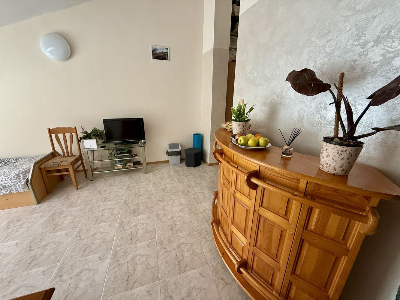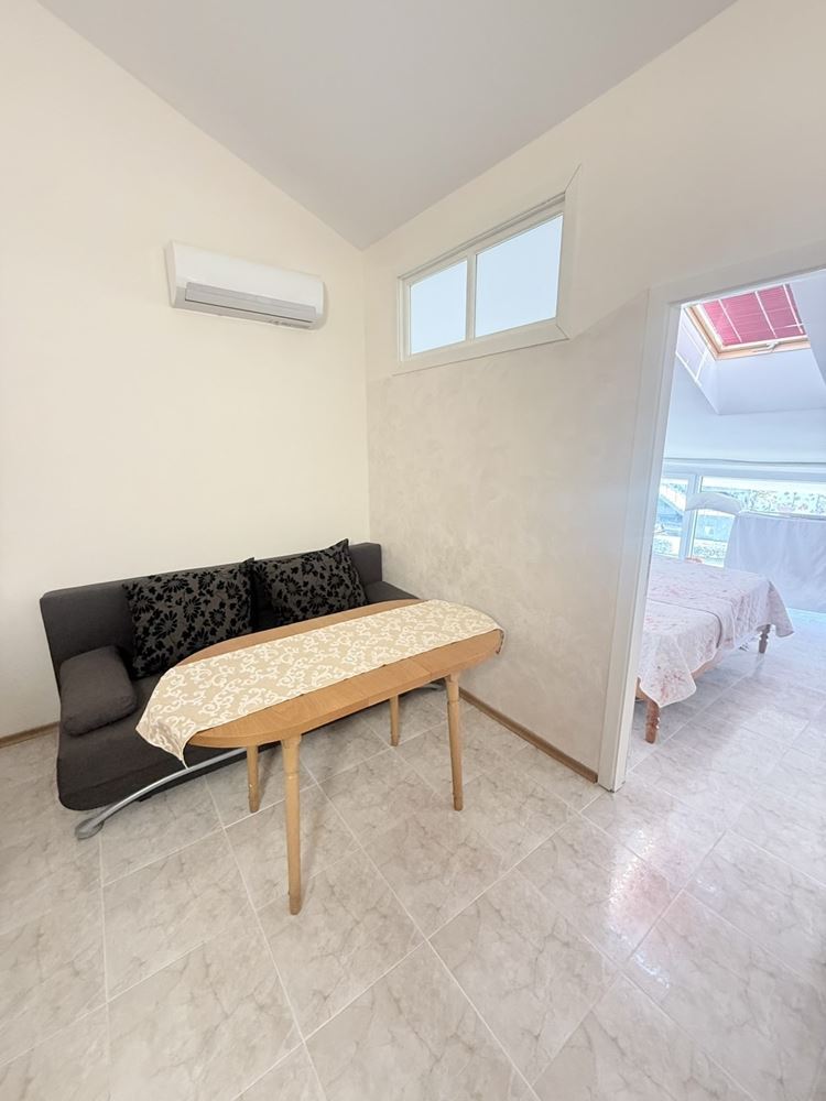 Představujeme prostorný byt s jednou ložnicí o ploše 62,74 m², nacházející se ve třetím patře ve velmi dobře udržovaném komplexu ve Slunečném pobřeží, pouhých 200 metrů od moře. Nemovitost je plně zařízená a nabízí útulné a funkční prostředí, vhodné jak pro vlastní bydlení, tak jako investici k pronájmu. Byt se vyznačuje praktickým uspořádáním, kde jsou kuchyň a jídelna odděleny, což přináší dodatečný komfort a praktičnost v každodenním životě. Prostorné místnosti jsou světlé a dobře organizované, což přispívá k pocitu útulnosti a klidu.