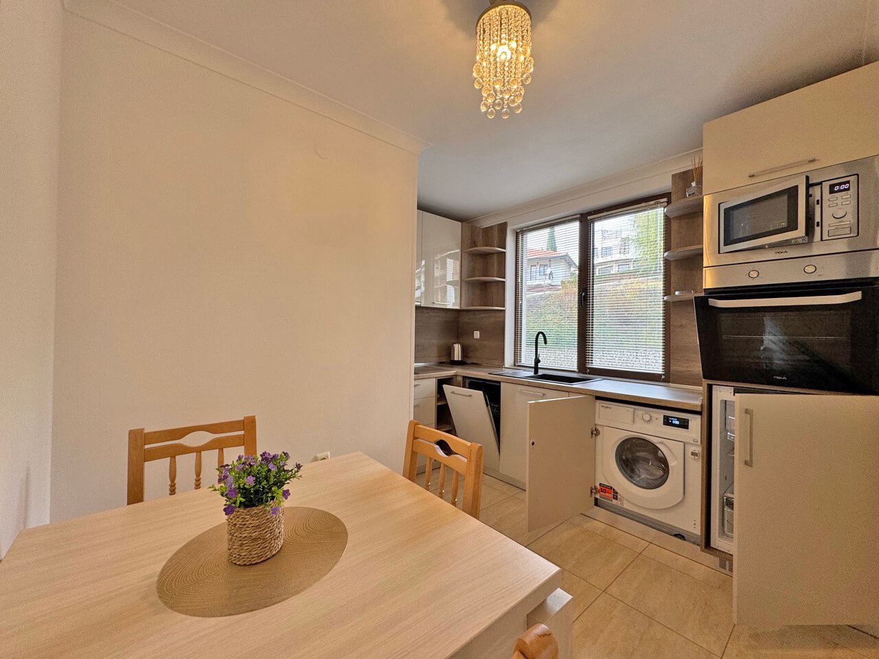 Studio se prodává plně zařízené a vybavené, včetně nábytku, spotřebičů a všeho potřebného k okamžitému nastěhování. Interiér je navržen s důrazem na detaily a nabízí útulnou atmosféru spojující funkčnost a styl. Prostor je dobře organizovaný, umožňuje pohodlný každodenní život a příjemné chvíle relaxace.