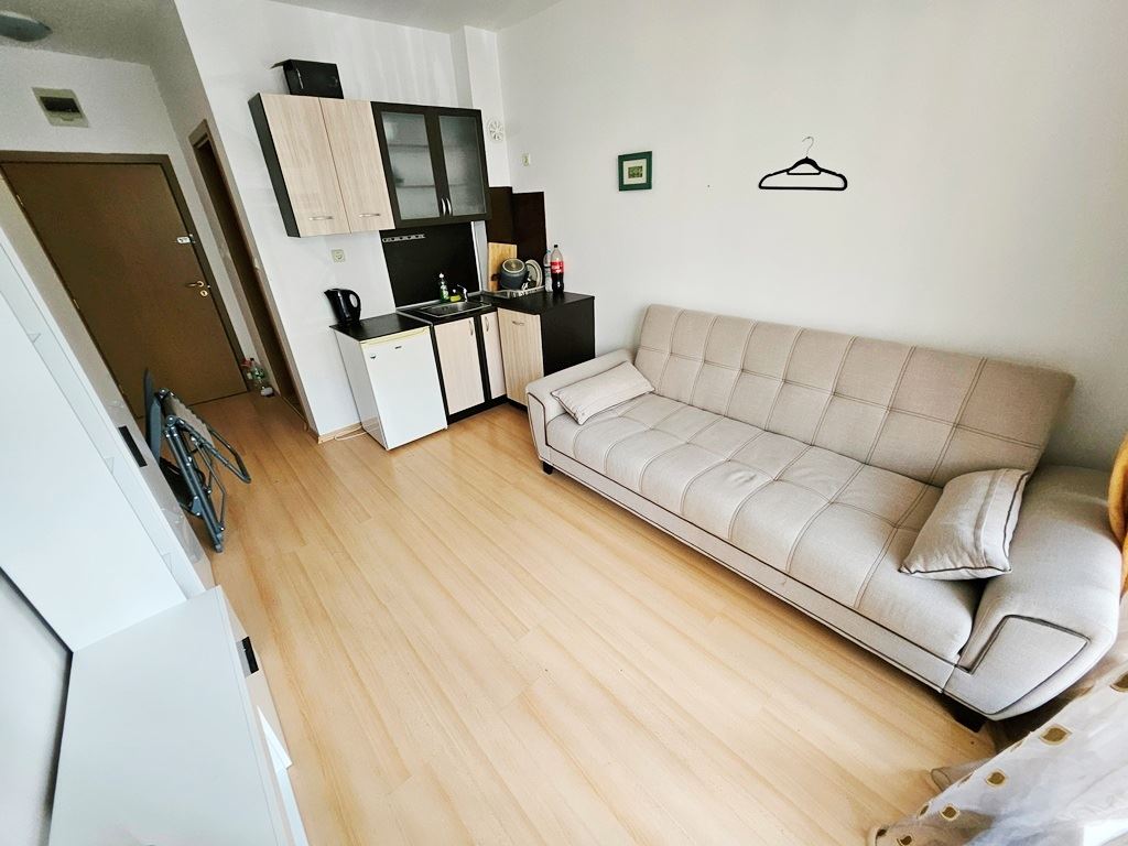 Nabízíme k prodeji studio s terasou, nacházející se v klidné příměstské části oblíbeného letoviska Slunečné pobřeží, které kombinuje blízkost resortního života s tišším a příjemnějším obytným prostředím. Nemovitost se nachází ve druhém patře velkého moderního komplexu, navrženého tak, aby poskytoval komfort a široké možnosti relaxace i aktivního životního stylu.