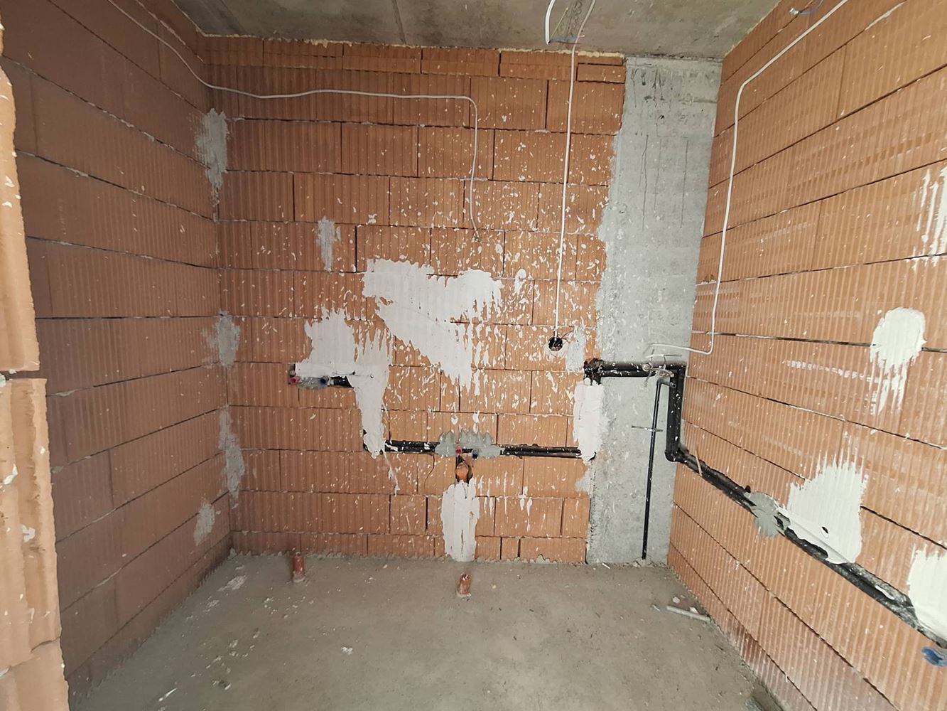 Apartmán se nachází na druhém obytném patře a sestává z chodby, velkého obývacího pokoje s kuchyní, dvou samostatných ložnic, dvou koupelen a hluboké terasy s přímým výhledem na moře. Prostorný obývací pokoj s kuchyňským koutem umožňuje volné rozdělení na odpočinkovou a jídelní zónu, čímž vzniká útulný prostor pro odpočinek a zábavu. Ložnice jsou dostatečně velké pro osobní komfort, a dvě koupelny zajišťují pohodlí pro rodinu nebo hosty.