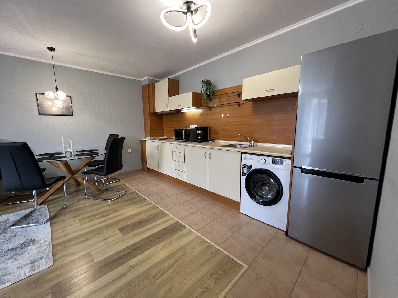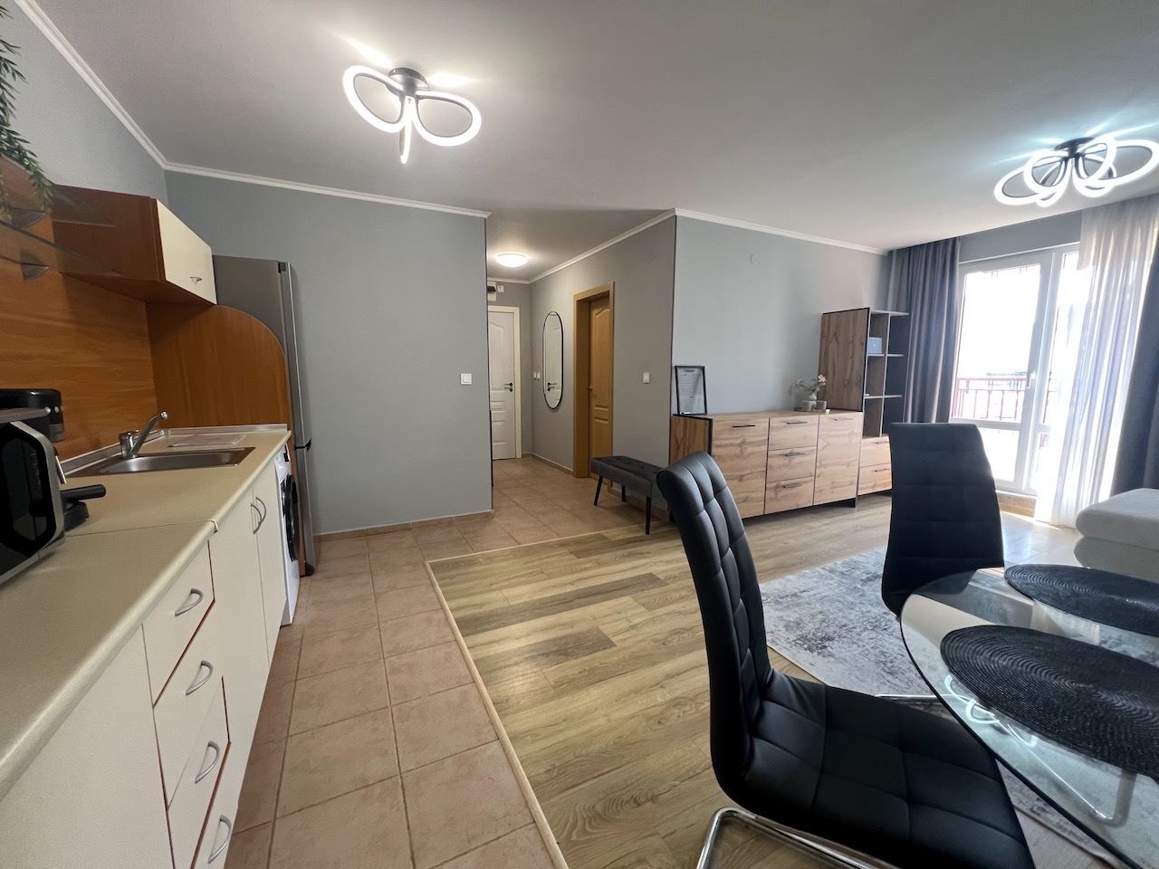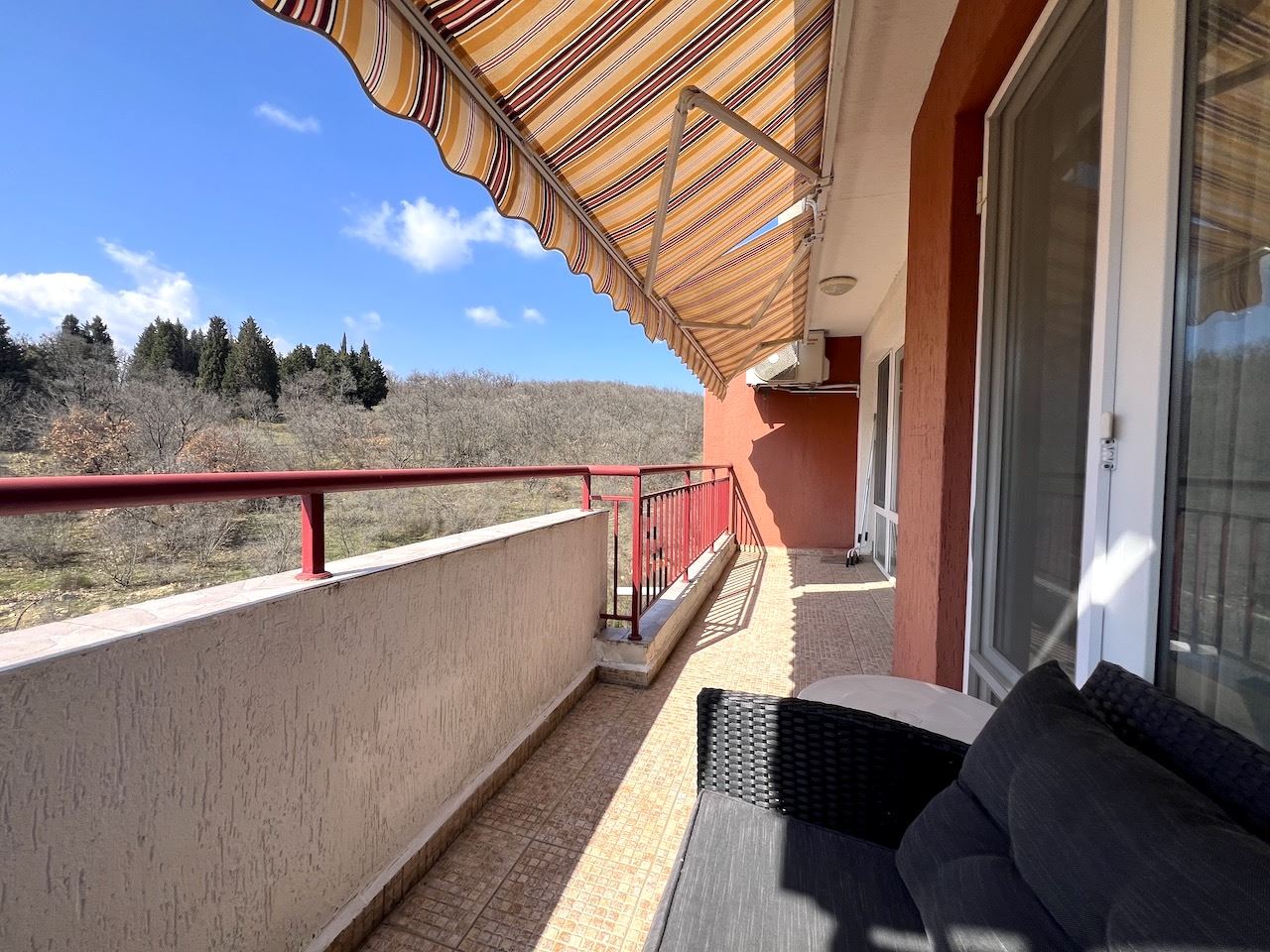 Představujeme útulný byt s jednou ložnicí, s celkovou plochou 71,33 m² a obytnou plochou 66,39 m², nacházející se ve čtvrtém patře (ne posledním) v prestižním komplexu ve Sveti Vlas. Nemovitost zaujme neuvěřitelným výhledem na moře a hory, který bude provázet každý váš den a vytváří atmosféru klidu a odpočinku. Byt je zařízen novým nábytkem a moderními spotřebiči, připraven k okamžitému nastěhování nebo sezónnímu pronájmu.