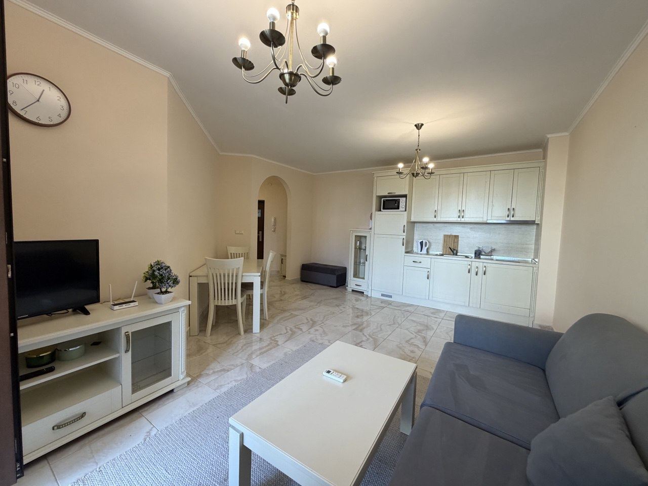 Nabízíme apartmán s jednou ložnicí o celkové ploše 65 m², nacházející se ve druhém patře jednoho z nejprestižnějších SPA komplexů v Nessebaru. Apartmán je plně zařízený a vybavený, připravený k okamžitému nastěhování, kombinující komfort, funkčnost a styl, což jej činí ideálním jak pro osobní užívání, tak pro investici s možností pronájmu.