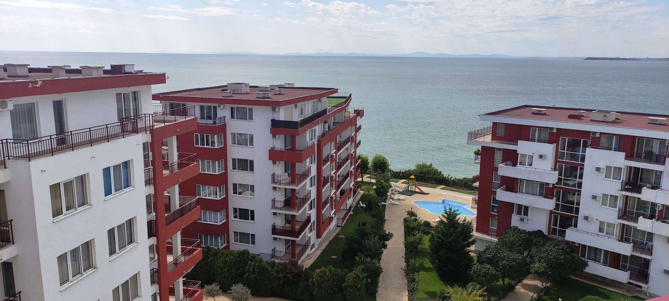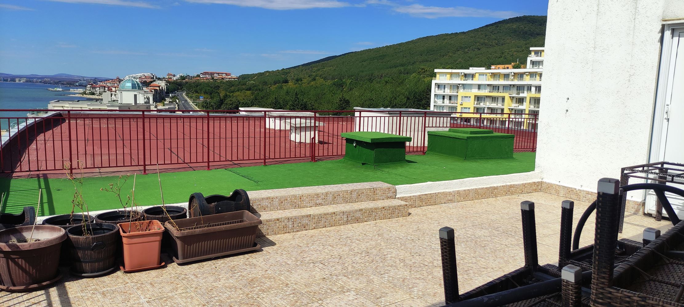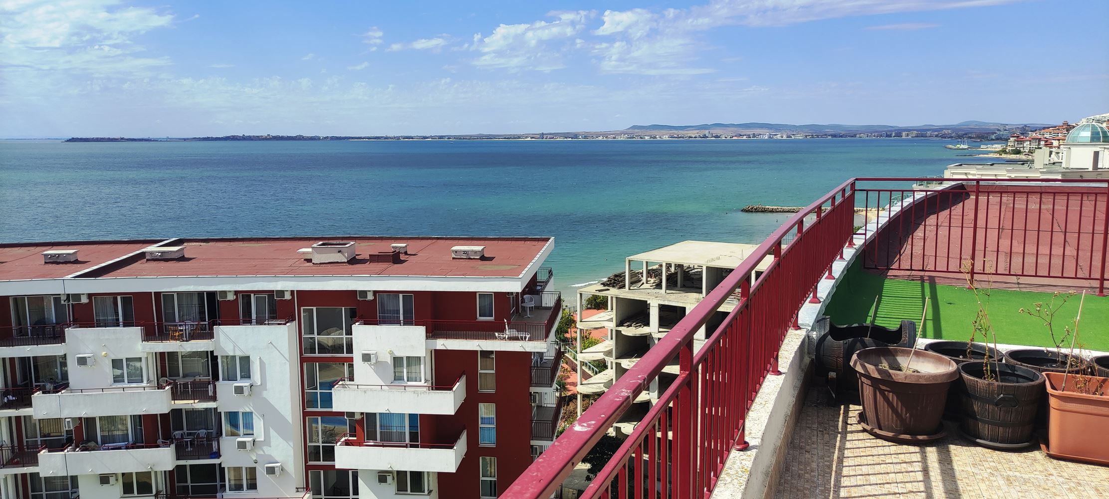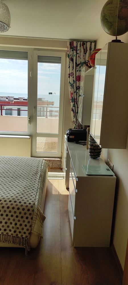 Představujeme vám prostorný apartmán se dvěma ložnicemi, umístěný na posledním patře prestižního komplexu v první linii ve Sveti Vlas. Nemovitost zaujme prostorností, útulností a světlem, nabízí ideální místo pro odpočinek nebo celoroční bydlení. Velká terasa s panoramatickým výhledem na moře umožňuje každý den si vychutnat nezapomenutelné západy slunce a mořské scenérie. Apartmán je plně připraven k nastěhování, vybaven vysoce kvalitním značkovým nábytkem a spotřebiči, které kombinují styl a funkčnost.