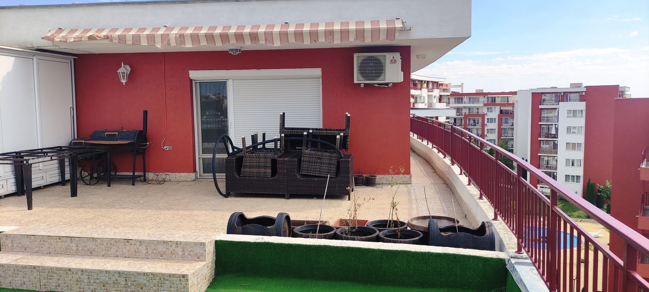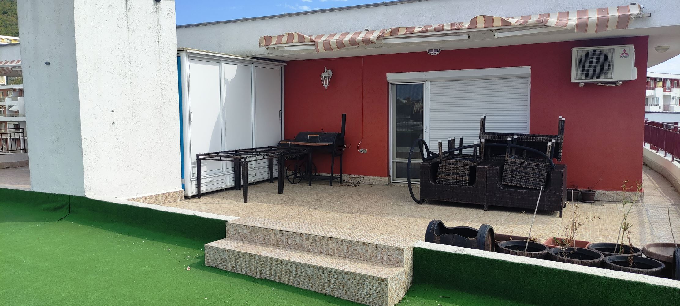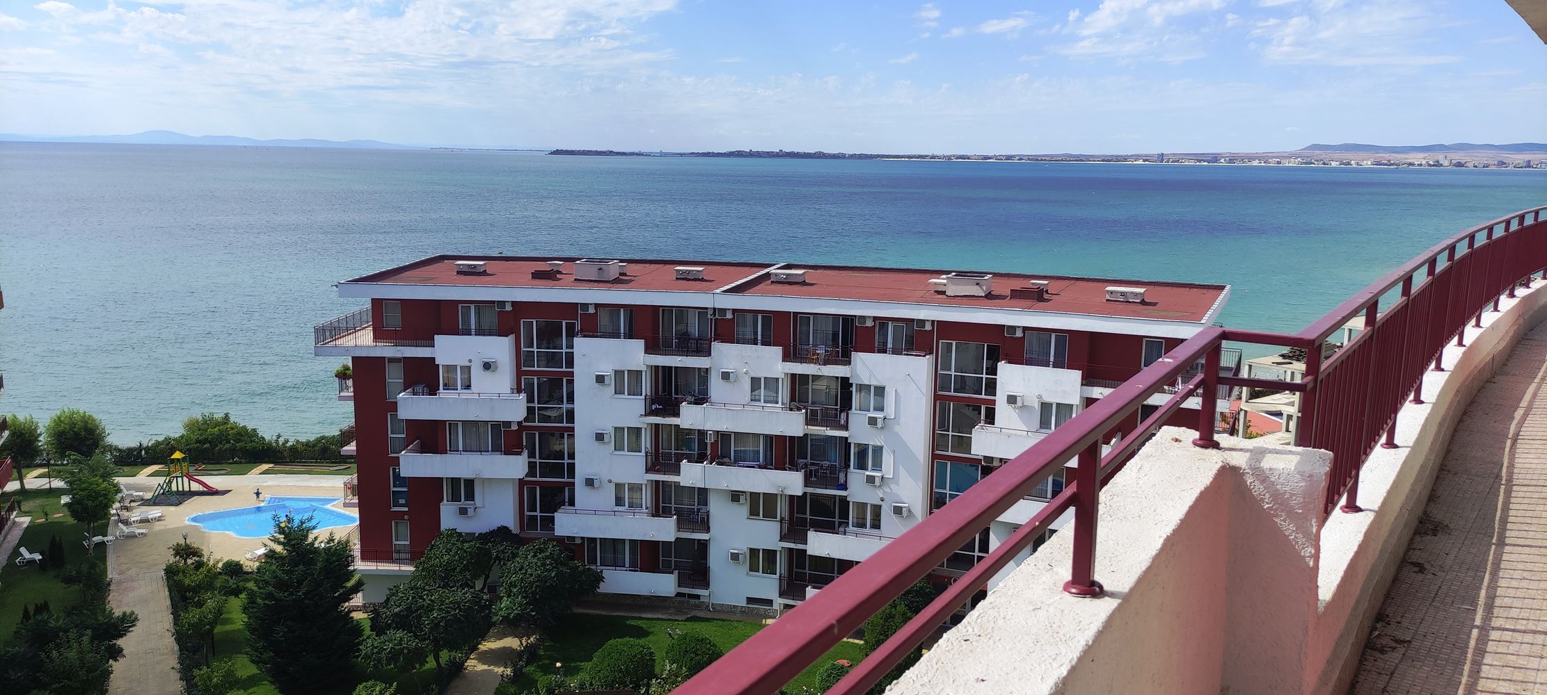 Představujeme vám prostorný apartmán se dvěma ložnicemi, umístěný na posledním patře prestižního komplexu v první linii ve Sveti Vlas. Nemovitost zaujme prostorností, útulností a světlem, nabízí ideální místo pro odpočinek nebo celoroční bydlení. Velká terasa s panoramatickým výhledem na moře umožňuje každý den si vychutnat nezapomenutelné západy slunce a mořské scenérie. Apartmán je plně připraven k nastěhování, vybaven vysoce kvalitním značkovým nábytkem a spotřebiči, které kombinují styl a funkčnost.
