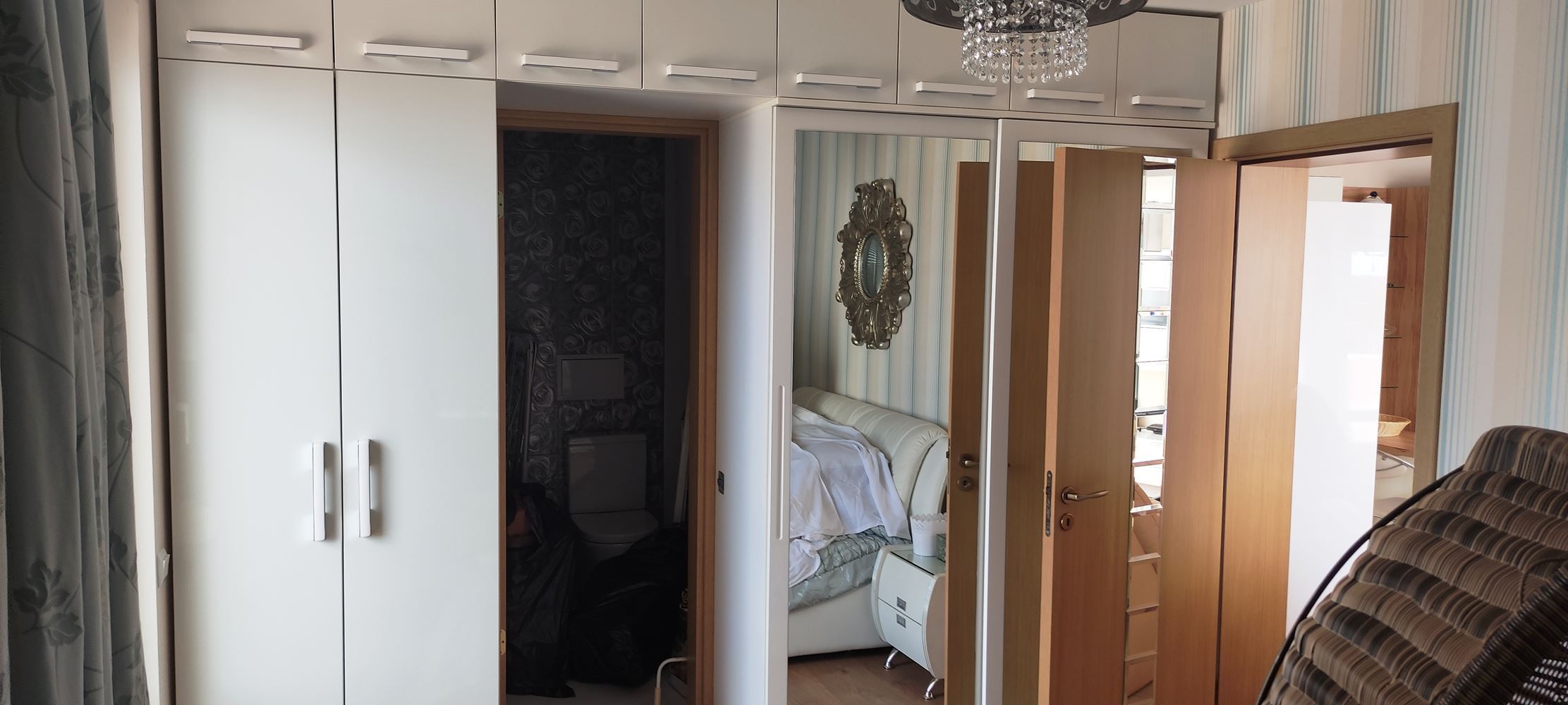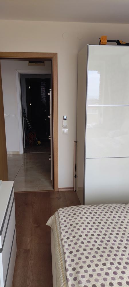 Dispozice apartmánu je inteligentní a funkční: obývací pokoj s kuchyňským koutem, dvě ložnice, dvě koupelny a obrovský balkon s výhledem na moře a vybavením pro opalování. Prostor je navržen tak, aby poskytoval maximální komfort a pohodlí jak rodině, tak hostům. Spojující luxus, styl a unikátní mořskou panoramu, je tento apartmán vysněným místem pro všechny, kteří hledají kvalitu života v první linii ve Sveti Vlas.