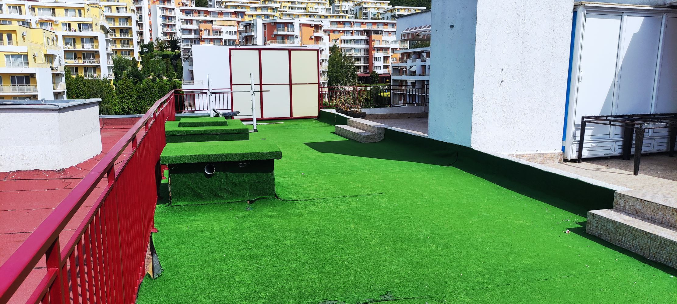 Komplex se pyšní luxusní parkovou zónou s unikátní krajinou, která poskytuje klid a krásu v srdci letoviska. Infrastruktura je velmi bohatá a zahrnuje dvě restaurace, kavárnu, bar, fitness, obchody, saunu, internetový klub, SPA centrum, dětský klub, kosmetický salon, masážní místnost, lékařskou ordinaci, dětská hřiště, cestovní kancelář, bazény a skluzavky, sportovní hřiště, minigolf, tenis, herní klub, parkování a stálou bezpečnost, a mnoho dalších zařízení zajišťujících komfort a rozmanitost pro obyvatele a jejich hosty. Profesionální správcovská společnost se stará o klid a pohodlí všech obyvatel, což zajišťuje bezstarostné užívání komplexu.