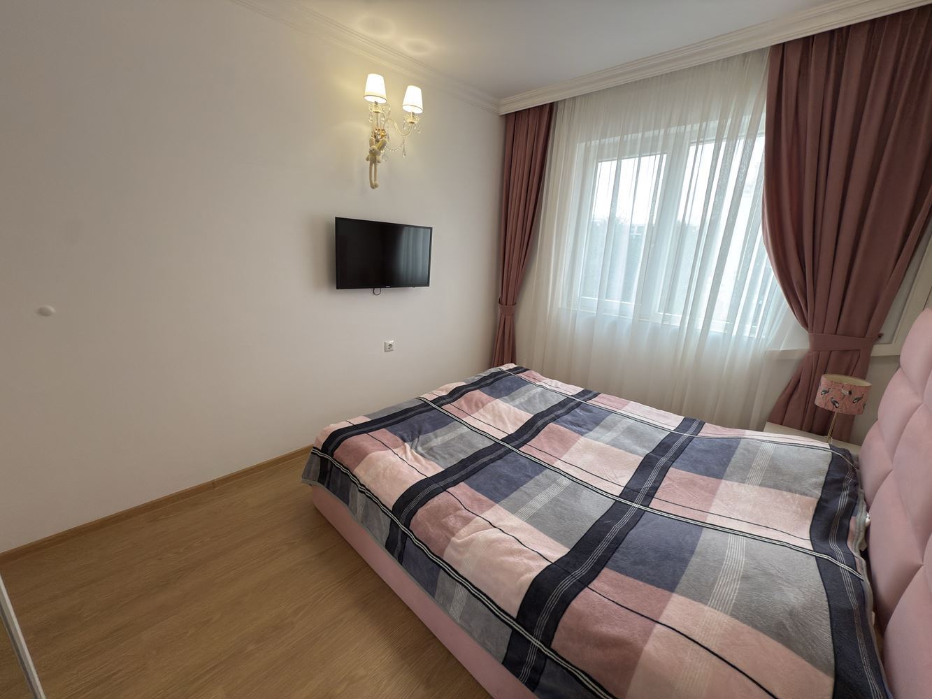 Apartmán zahrnuje prostorný obývací pokoj s kuchyňským koutem a dvě samostatné ložnice, které poskytují komfort a soukromí všem členům domácnosti. Místnosti jsou světlé a dobře vybavené, což vytváří útulnou atmosféru, a balkon umožňuje vychutnat si výhled a čerstvý vzduch.