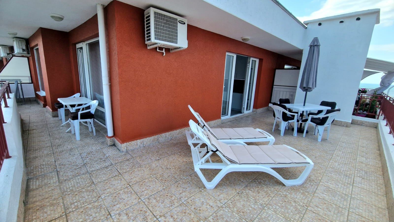 Představujeme vám výjimečný dvoupokojový apartmán o celkové ploše 94 m², nacházející se v posledním patře prestižního komplexu v první linii ve Svatém Vlasu. Nemovitost zaujme prostornou terasou a dechberoucím výhledem na moře, který spojuje luxus, komfort a pocit nekonečné dovolené.