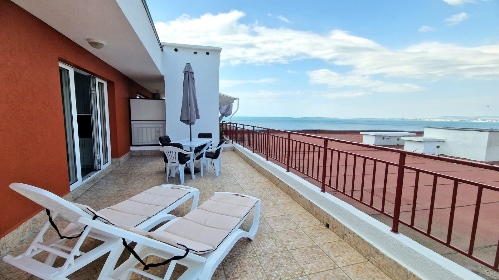 Luxusní dvoupokojový apartmán s velkou terasou a panoramatickým výhledem na moře v první linii ve Svatém Vlasu
