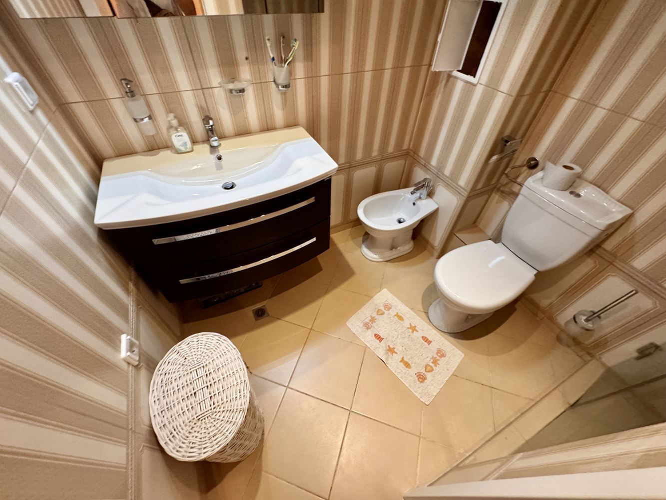 Představujeme výjimečný luxusní mezonet o celkové ploše 92 m², umístěný v přízemí a prvním obytném patře, který kombinuje styl, funkčnost a přímý přístup k vlastní zahradě. Tato nemovitost je ideální pro ty, kteří hledají kombinaci pohodlí, komfortu a klidu, a zároveň chtějí využít všechny výhody prestižního komplexu v tiché a zelené oblasti, jen 7 minut od moře. Mezonet je plně zařízen a nabízí útulné uspořádání prostoru, vhodné jak pro trvalé bydlení, tak pro sezónní pobyty. Vlastní zahrada poskytuje pocit svobody a soukromí, umožňuje relaxaci na čerstvém vzduchu a příjemné večery s rodinou nebo přáteli.