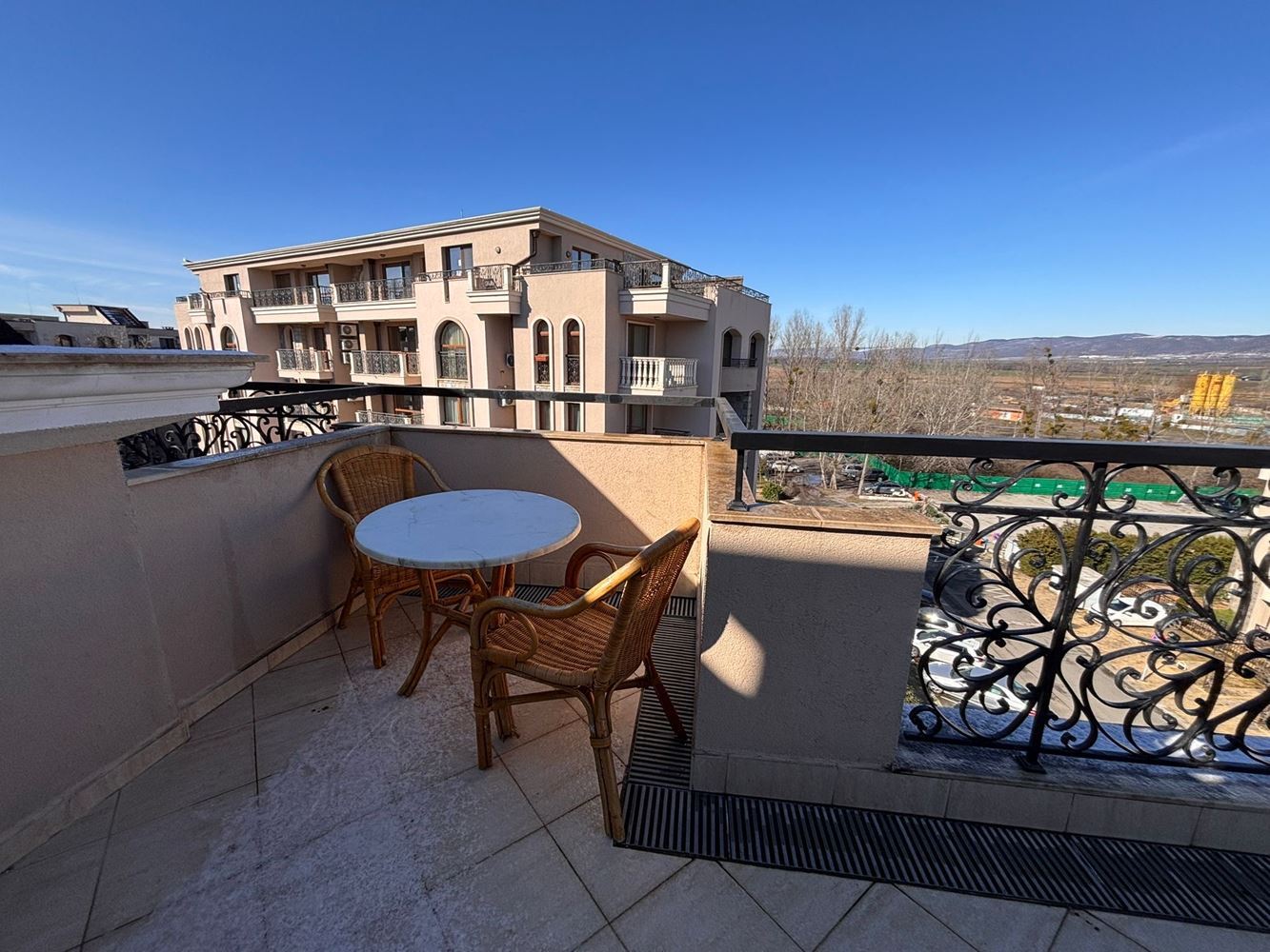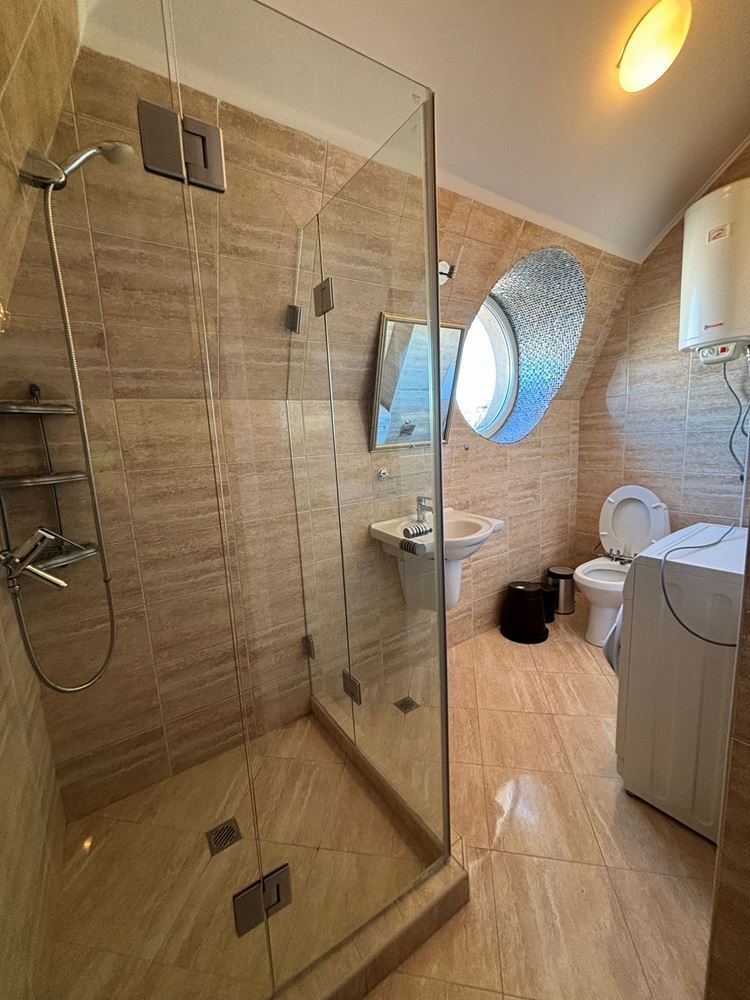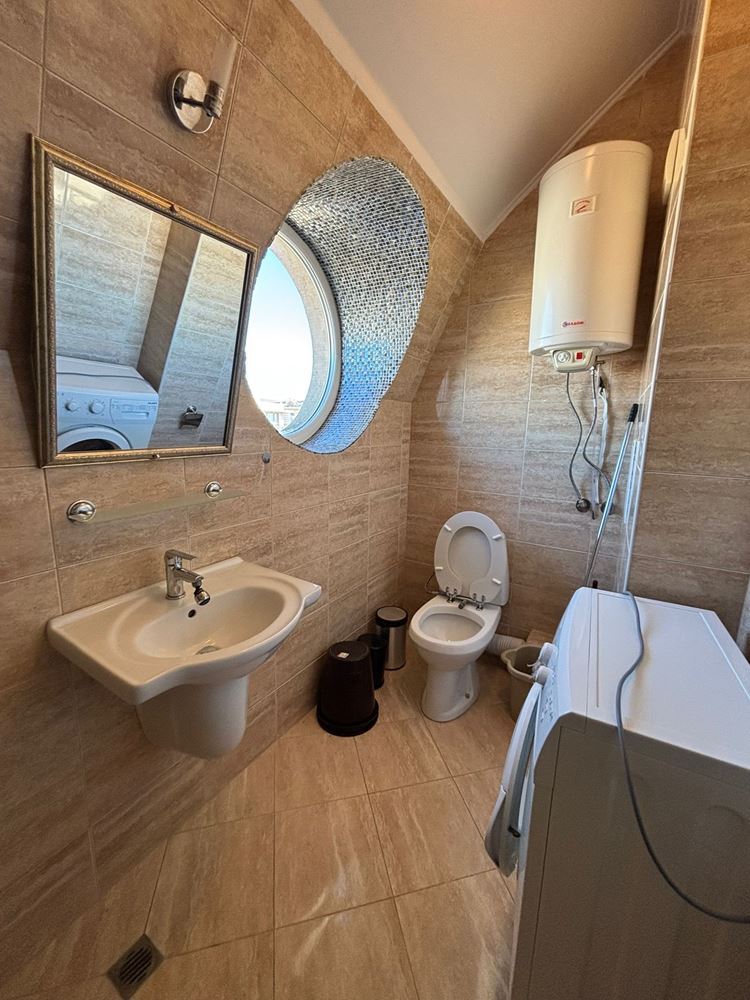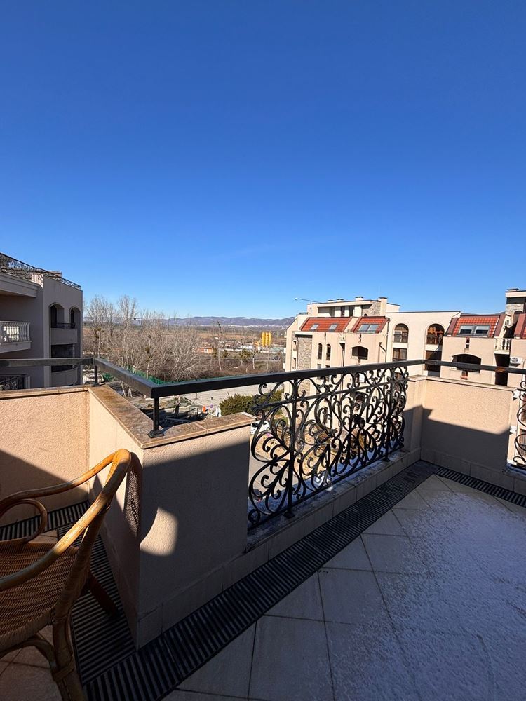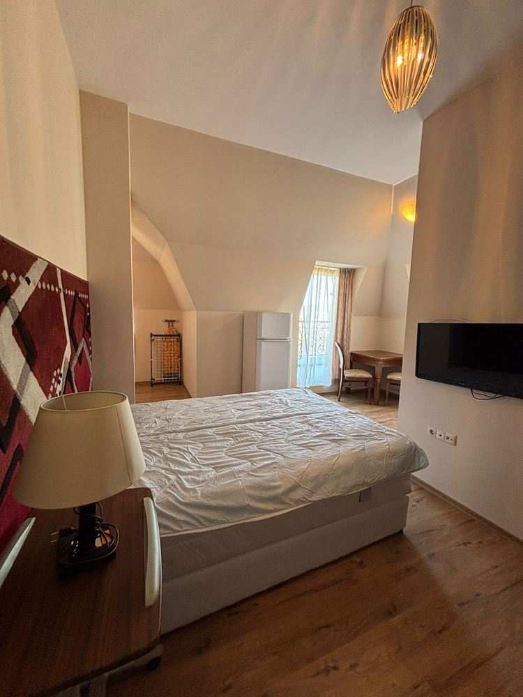 Nabízíme k prodeji plně zařízené a vybavené studio s prostornou panoramatickou terasou, situované v pátém patře luxusního komplexu v klidné a tiché části Slunečného pobřeží. Nemovitost má celkovou plochu 52,05 m² a nabízí ideální rovnováhu mezi komfortem, funkčností a rekreační atmosférou, což z ní činí skvělou volbu jak pro osobní využití, tak pro investici s potenciálem pronájmu. Interiér je proveden s důrazem na detail a zahrnuje světlý obytný prostor s kuchyňským koutem, spací zónu a jídelní část, které vytvářejí pocit prostornosti a útulnosti. Apartmán se prodává plně zařízený a vybavený, připravený k okamžitému nastěhování bez nutnosti dalších investic. Skutečným lákadlem je panoramatická terasa, která nabízí příjemný prostor pro odpočinek, ranní kávu nebo večerní relaxaci s výhledem na okolí.
