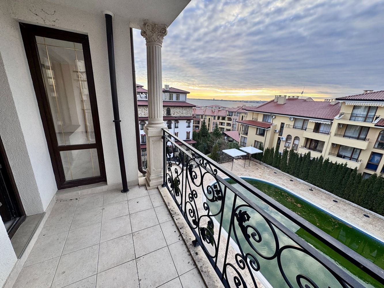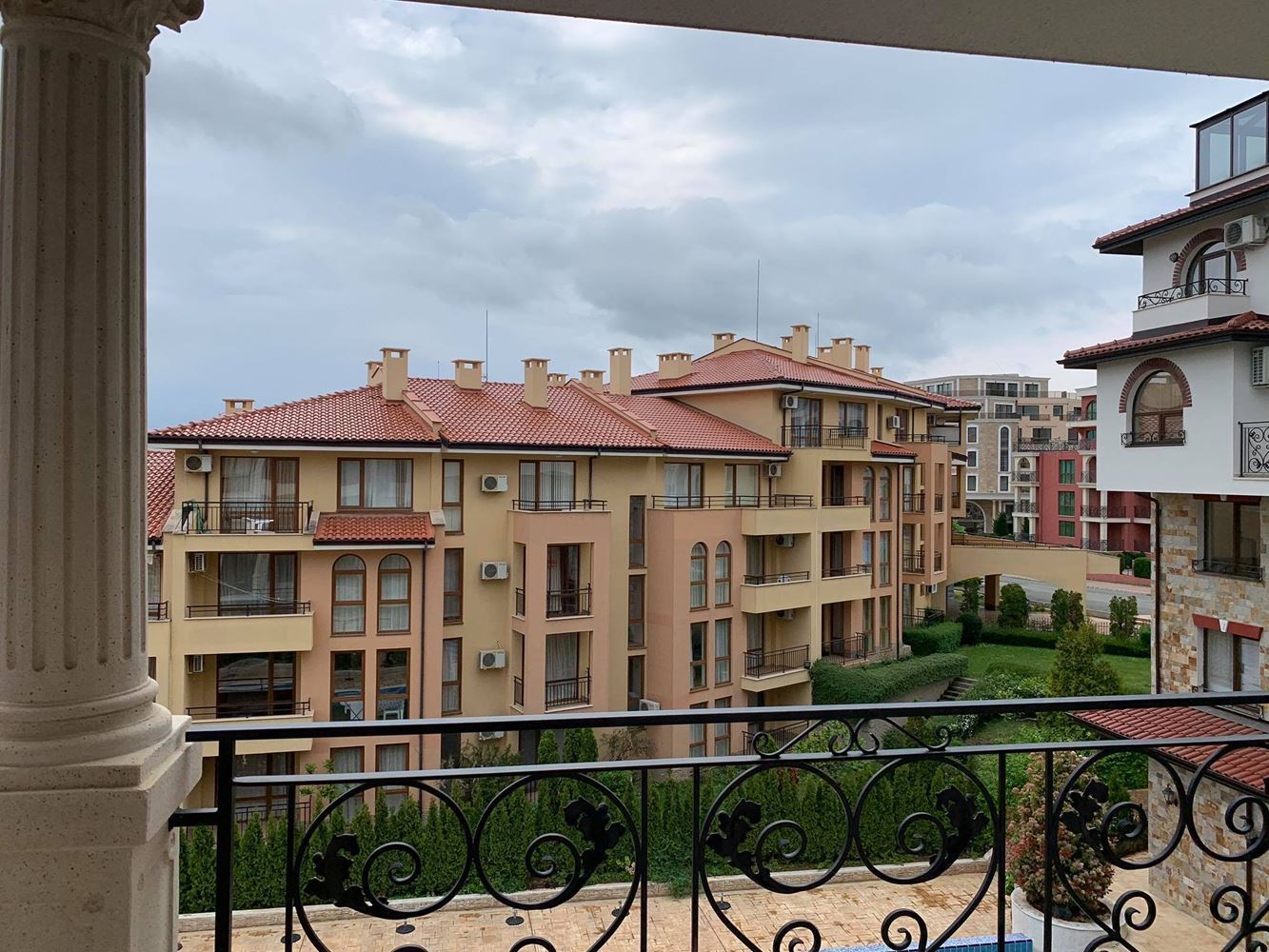 Komplex ohromuje vysokou úrovní bezpečnosti a profesionálním správcováním budovy, což zajišťuje klid a pohodlí pro všechny obyvatele. Moderní výtah usnadňuje pohyb mezi patry, což přidává extra pohodlí pro rodiny s dětmi a seniory. Území je pečlivě udržováno, nabízí bohatou zeleň, útulná odpočinková místa, fontány, dekorativní sochy a vzrostlé stromy, čímž vytváří harmonické a klidné prostředí. Pro milovníky aktivního odpočinku a relaxace komplex disponuje prostorným venkovním bazénem, ideálním pro osvěžení během horkých letních dnů.