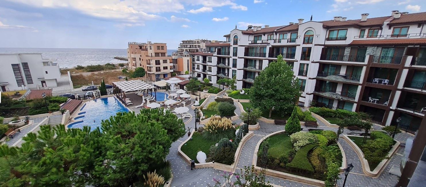 Představujeme útulný a plně zařízený byt s jednou ložnicí o ploše 62 m², nacházející se v přízemí moderního komplexu, pouhých 50 metrů od moře ve městě Pomorie. Nemovitost kombinuje komfort, vynikající polohu a příjemný výhled na dvůr a bazén, což z ní činí ideální volbu jak pro vlastní bydlení, tak pro investici. Byt má funkční a dobře uspořádanou dispozici, která zahrnuje prostornou chodbu, světlý obývací pokoj s kuchyňským koutem, útulnou ložnici, koupelnu s toaletou a velkou terasu. Terasa je jednou z největších předností nemovitosti – nabízí příjemný výhled na krásně upravený vnitřní dvůr a bazén, což vytváří ideální prostředí pro relaxaci, ranní kávu nebo klidné večery venku.