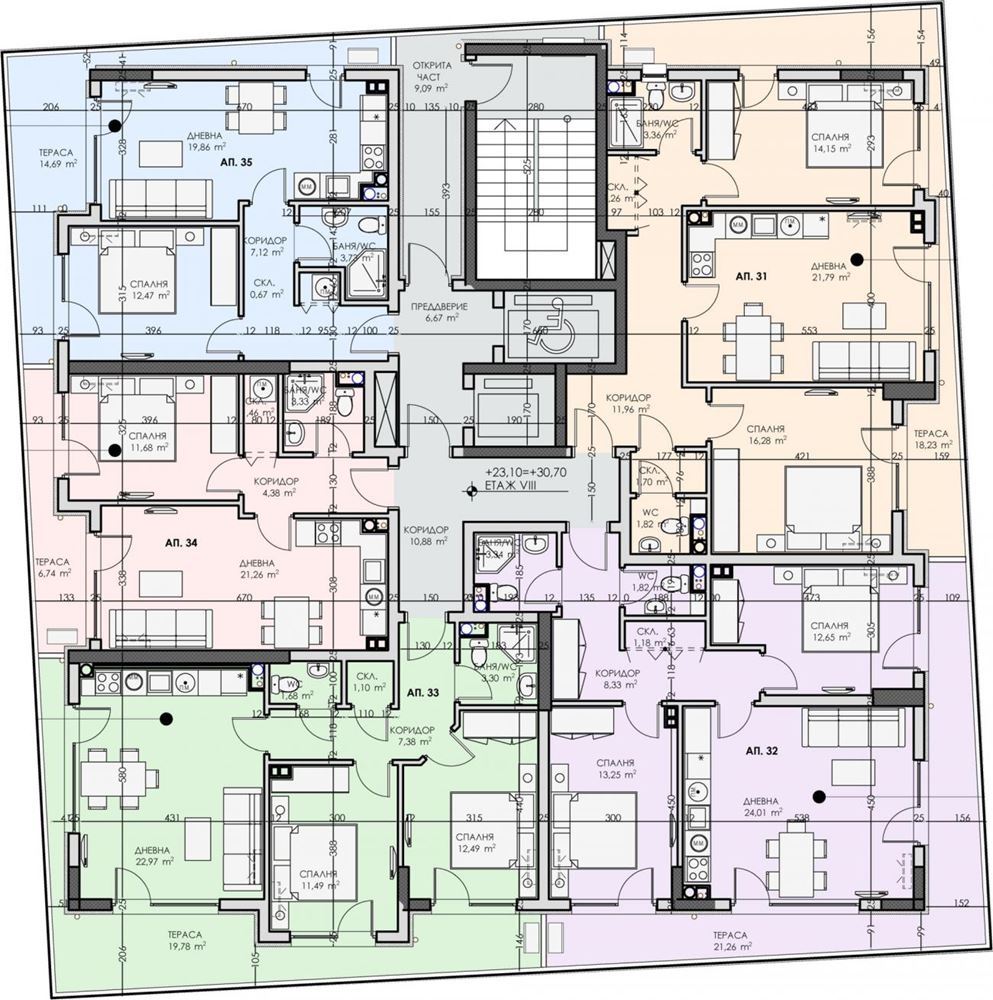 Nabízíme k prodeji dvoupokojový byt o celkové ploše 64,84 m², nacházející se ve čtvrtém patře rezidenčního komplexu nové generace v prestižní čtvrti Slavykov, Burgas. Nemovitost je součástí bytového projektu, který přehodnocuje městský prostor prostřednictvím moderní architektury, impozantního rozsahu a výjimečné funkčnosti, kombinující pohodlí, styl a současný design.
