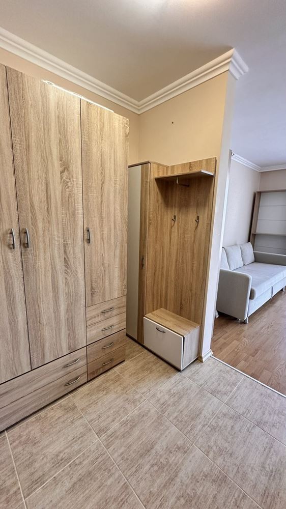 Nabízíme k prodeji světlé a funkční studio o celkové ploše 43 m², umístěné v pátém patře budovy s výtahem v samotném centru Slunečného pobřeží. Nemovitost představuje praktické jednoprostorové bydlení s jasně vymezenými zónami pro odpočinek a stravování, vlastním balkonem a samostatnou koupelnou. Moderní design a stylové dokončovací práce vytvářejí atmosféru současného a útulného života, vhodného jak pro vlastní užívání, tak pro pronájem.
