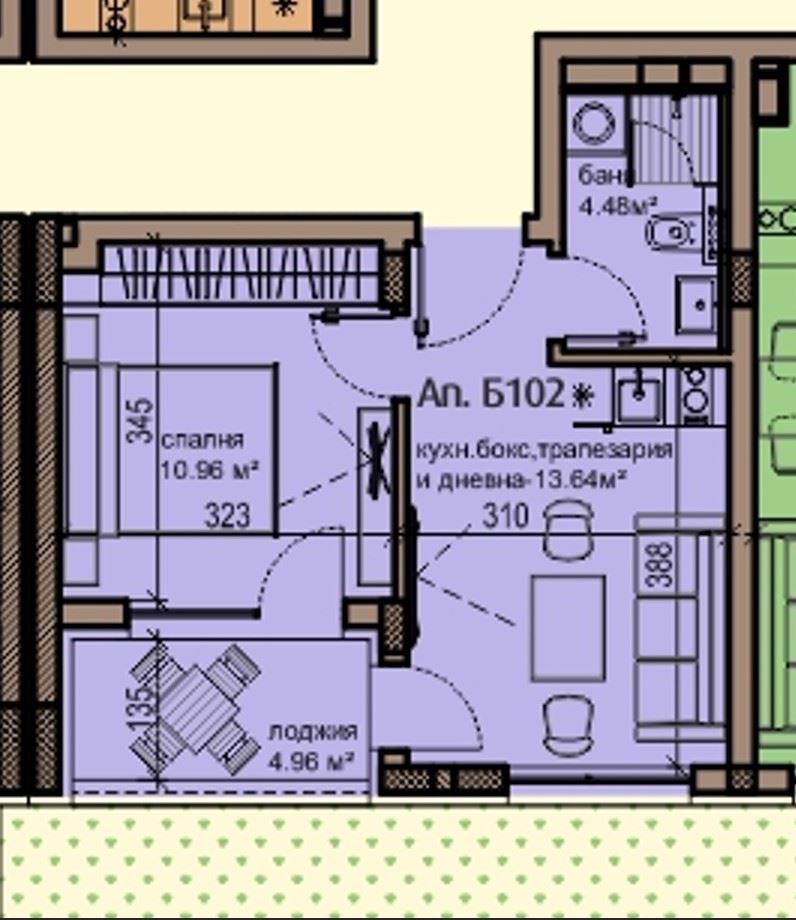V rámci tohoto moderního komplexu nabízíme dvoupokojový byt o ploše 45,88 m², umístěný v přízemí, což z něj činí velmi pohodlnou a praktickou volbu. Byt má funkční a promyšlené dispoziční řešení, které zahrnuje vstupní předsíň, světlý obývací pokoj s kuchyňskou částí, samostatnou ložnici, koupelnu s toaletou a lodžii, jež zajišťuje propojení s venkovním prostorem a přispívá k pocitu komfortu a útulnosti.