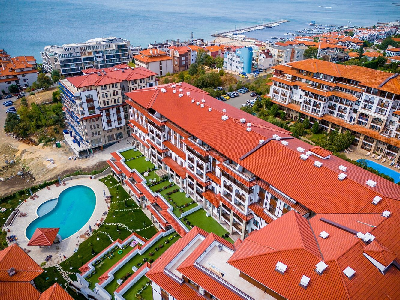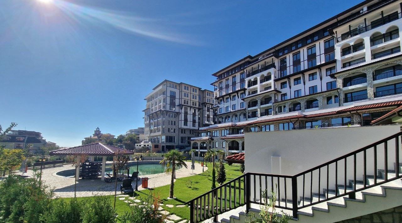 Nové studio s panoramatickým výhledem na moře a patiem v prestižním komplexu ve Sveti Vlas