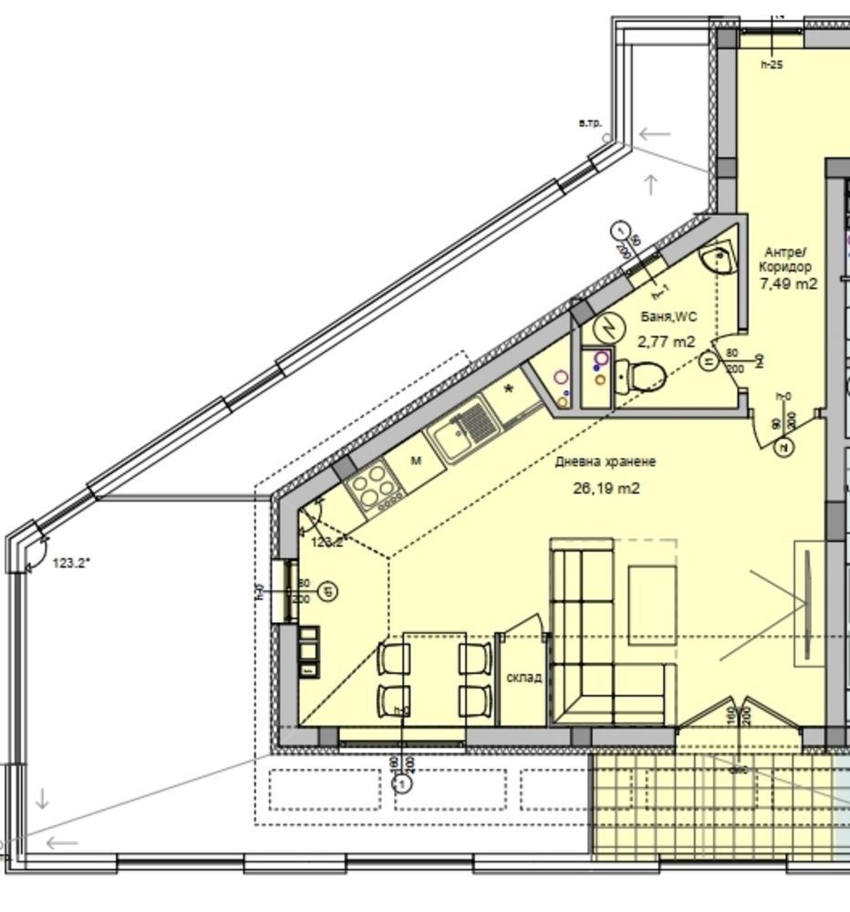 Centrum Sarafova je jen 3–4 minuty pěšky, stejně jako autobusová zastávka, poskytující snadnou dopravu do všech částí města. Supermarket je pouhé 2 minuty daleko, což zajišťuje maximální komfort každodenního života.