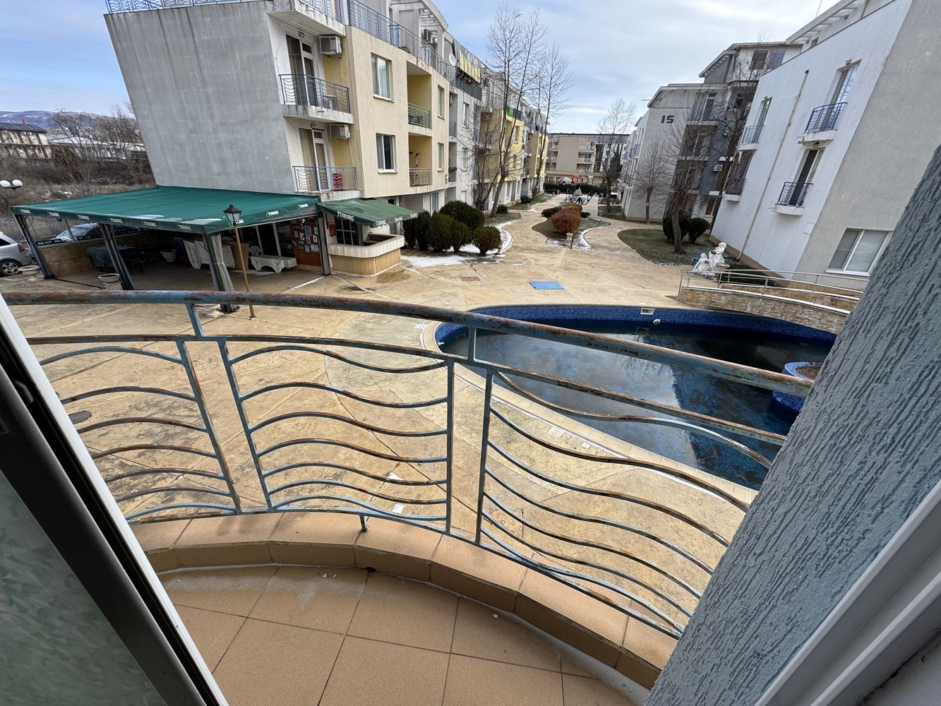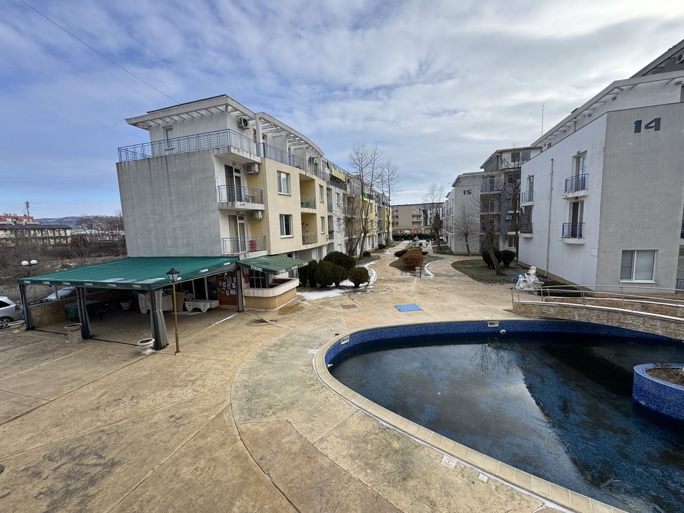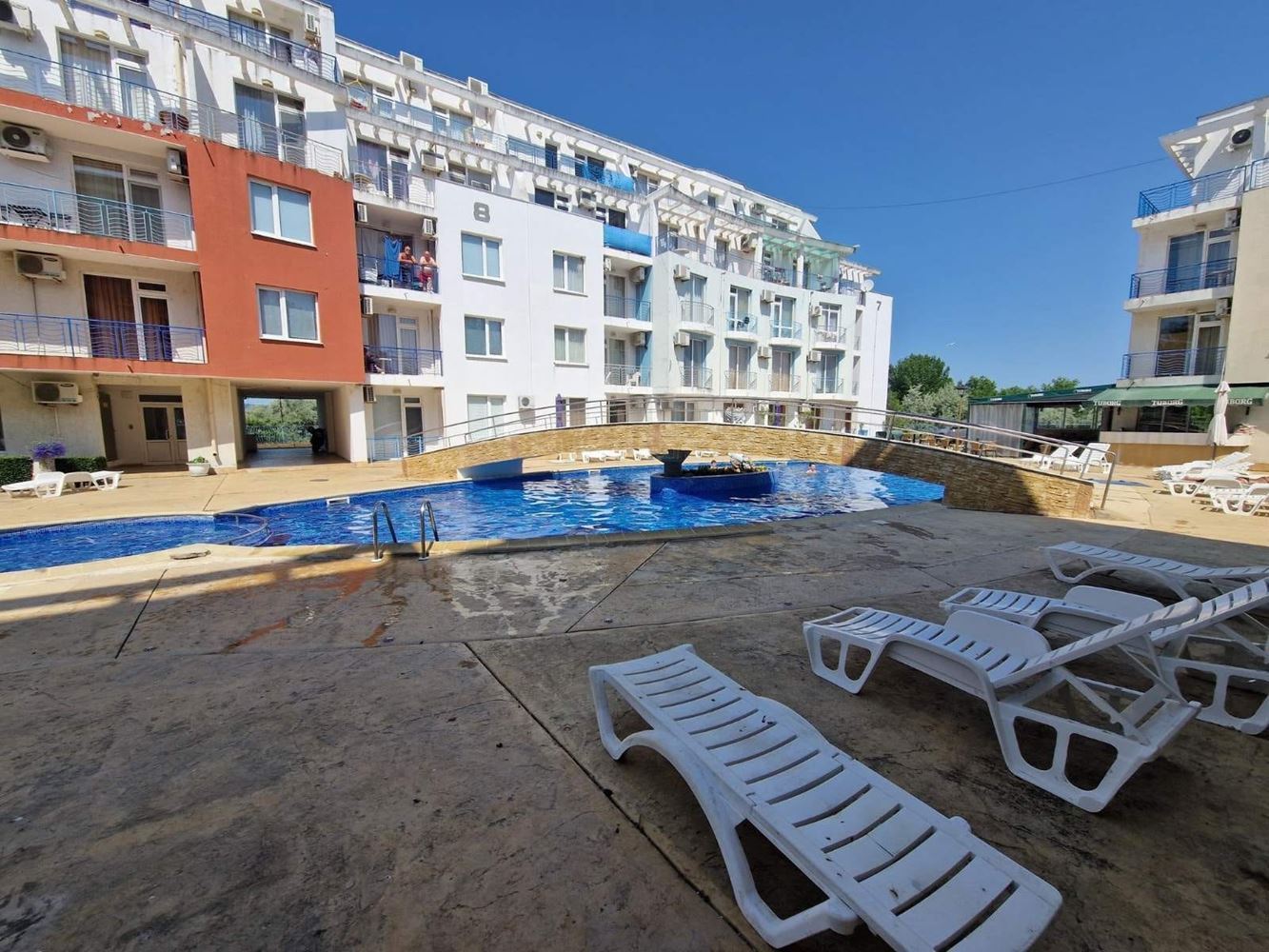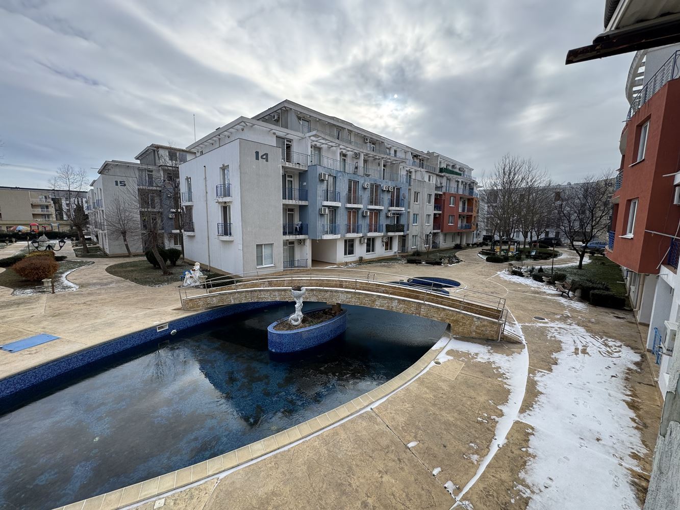 Nabízíme k prodeji kompaktní a funkční studio, nacházející se v dobře udržovaném rekreačním komplexu v rezortu Slunečné Pobřeží. Nemovitost má plošnou výměru 29 m² a nachází se ve druhém patře ze tří, což zajišťuje snadný přístup a je velmi vhodné jak pro vlastní využití, tak jako investice k pronájmu během letní sezóny. Studio je plně vybavené a připravené k okamžitému užívání. Interiér je prakticky uspořádán a vytváří útulnou atmosféru, poskytující vše potřebné pro komfortní pobyt. Prostorná místnost kombinuje obytnou a spací zónu, kuchyňský kout a koupelnu s toaletou. Z bytu je příjemný výhled na bazén, který přispívá k pocitu odpočinku a relaxace.