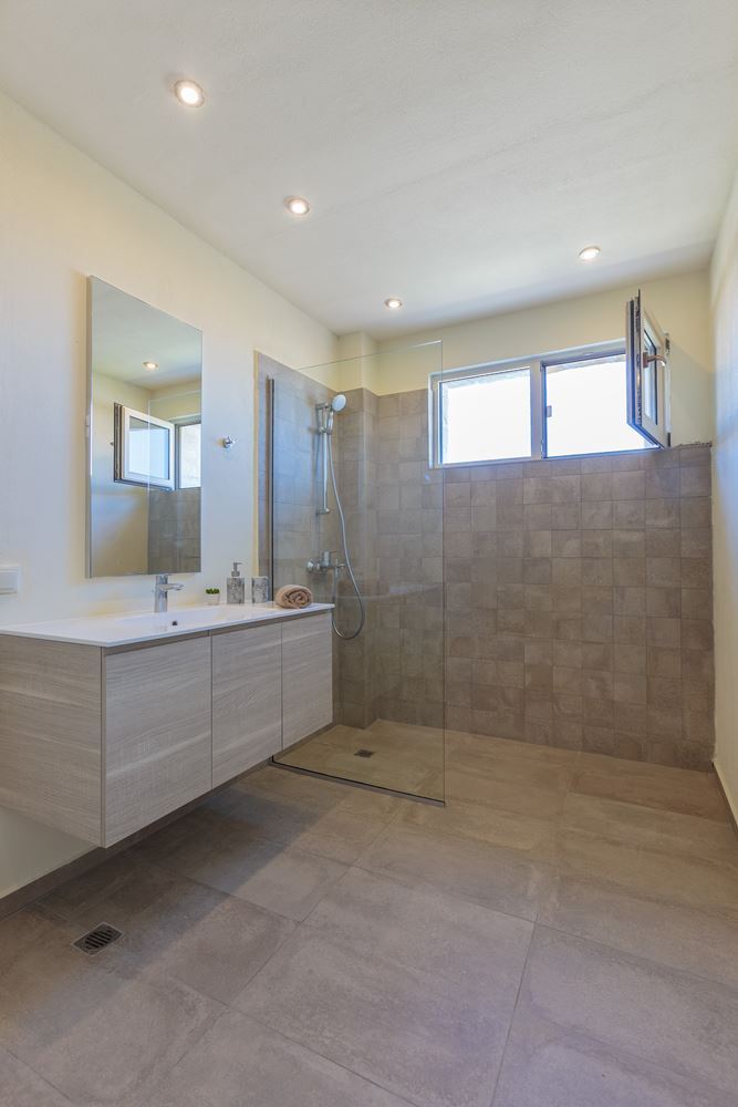 Druhé patro nabízí plné soukromí a pohodlí, s třemi prostornými ložnicemi, z nichž každá je osobní zónou pro relaxaci, a třemi moderními koupelnami s toaletami. Z terasy se otevírá okouzlující mořská panoráma, které proměňuje každé ráno a večer v opravdovou radost.