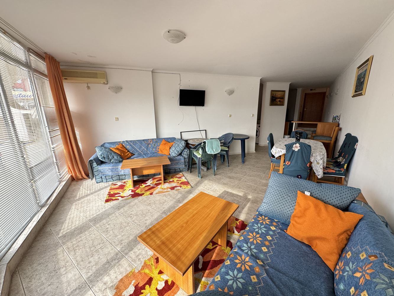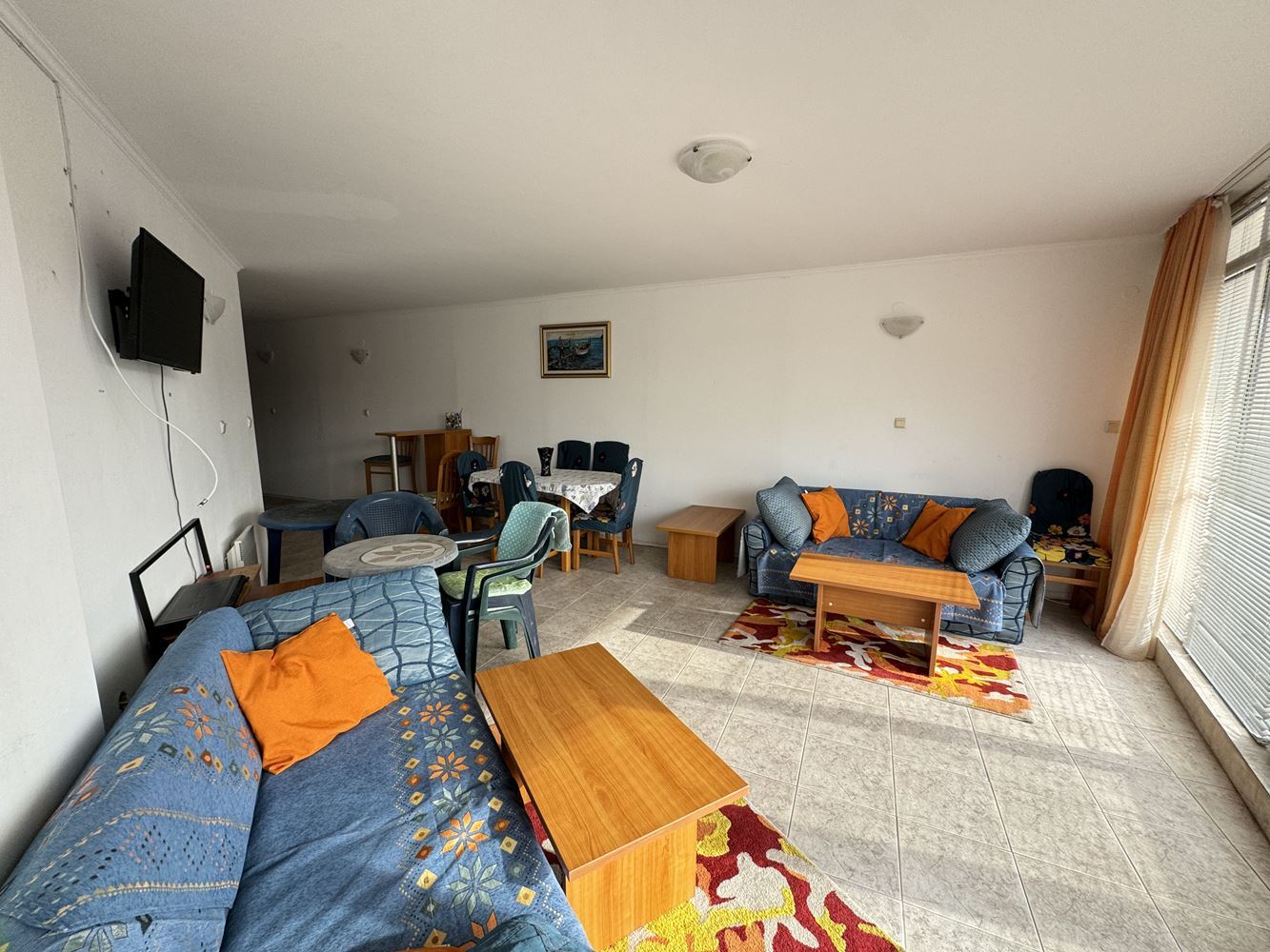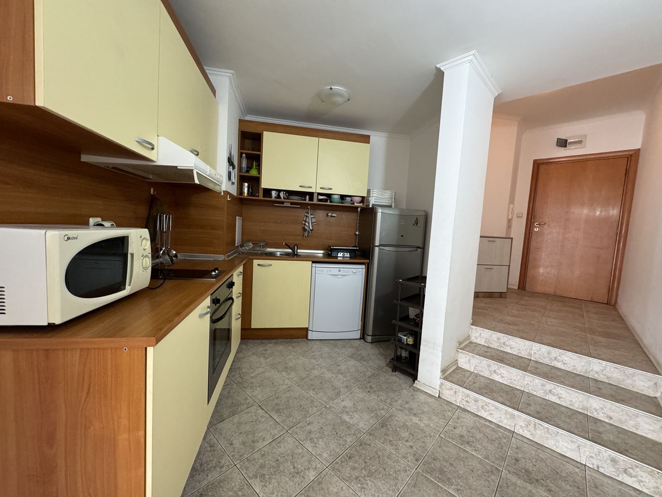 Apartmán je plně zařízený a vybavený, připravený k okamžitému užívání. Prostorná plocha 88 m² zajišťuje komfort a funkčnost: světlý obývací pokoj s kuchyňským koutem, útulná ložnice, koupelna s toaletou a terasa. Orientace na ulici poskytuje klid a soukromí, daleko od hluku vnitřních částí komplexu. Prostory jsou dobře organizované s možností vytvoření pohodlné jídelní části a zóny pro odpočinek.