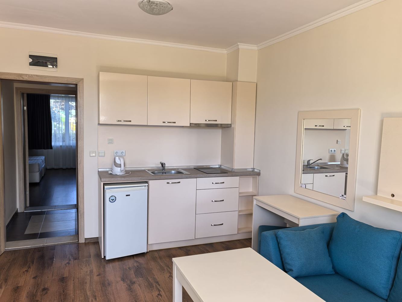 Představujeme vám útulné a funkční studio, nacházející se v jednom z nejpopulárnějších SPA komplexů ve Sveti Vlas. Nemovitost se nachází v přízemí a má celkovou plochu 41 m², což zajišťuje komfort a pohodlí jak pro rekreační pobyty, tak pro celoroční bydlení.