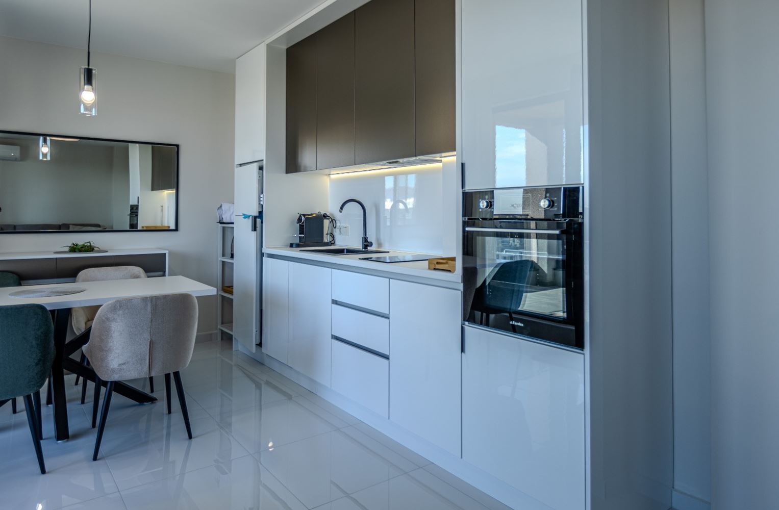 Apartmán je navržen pro celoroční bydlení. Podlahové vytápění v celé nemovitosti zajišťuje rovnoměrné teplo a útulnost během zimních měsíců, zatímco klimatizace ve všech místnostech zaručují příjemný chlad v létě. Prostorný obývací pokoj s kuchyňským koutem je ideálním místem pro rodinná setkání a odpočinek a dvě samostatné ložnice poskytují komfort a soukromí. Hlavní předností této nemovitosti je nádherná panoramatická terasa, která nabízí inspirující výhledy a vytváří ideální prostor pro odpočinek a zábavu na čerstvém vzduchu.