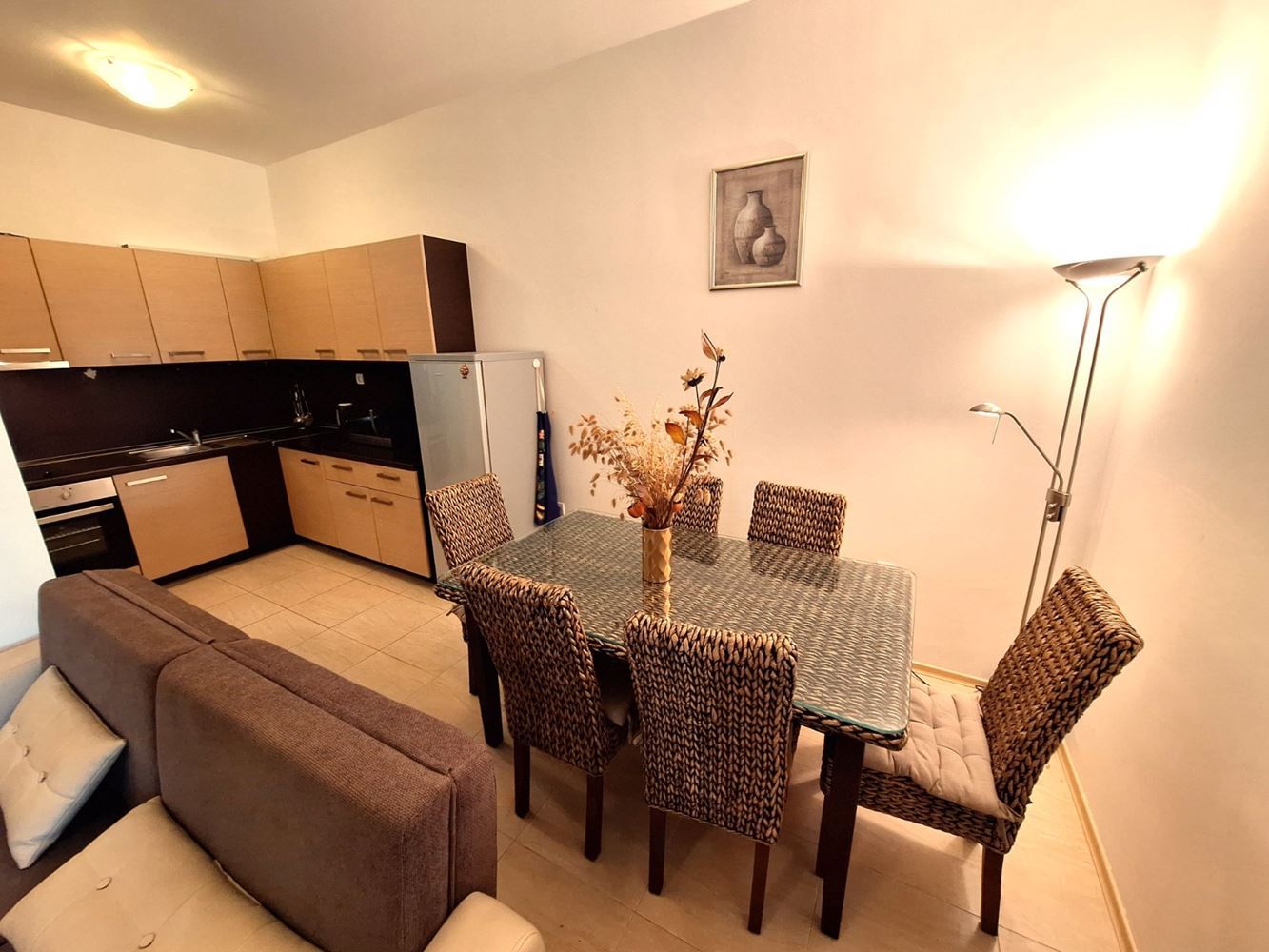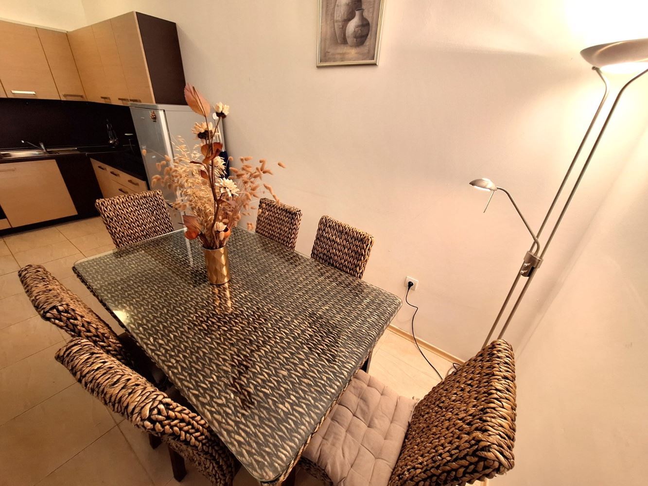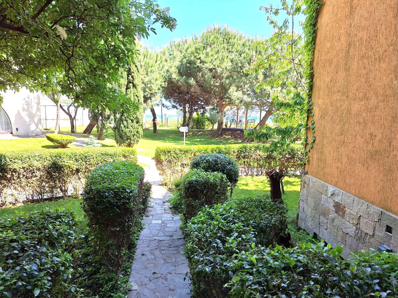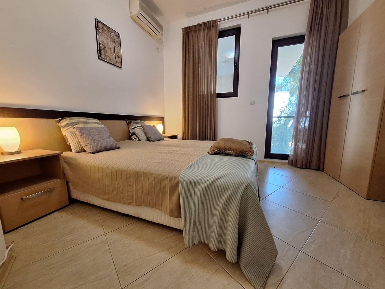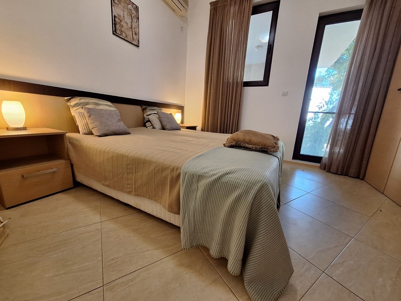 Představujeme výborný byt se dvěma ložnicemi s výhledem na moře a park, nacházející se ve velkém, zavedeném komplexu v první linii v oblasti Aheloy – místě, které spojuje klid, přírodu a vysoký standard bydlení. Nemovitost má celkovou plochu 119 m² a nachází se v přízemí, disponuje samostatným vstupem a soukromou zahradou, což ji maximálně přibližuje pocitu samostatného domu u moře.