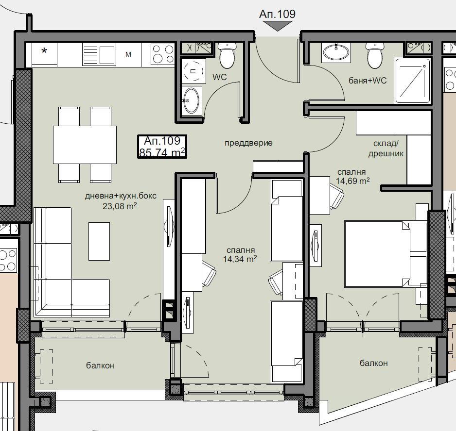 Prostorný byt se dvěma ložnicemi ve výstavbě v Bratya Miladinovi, Burgas