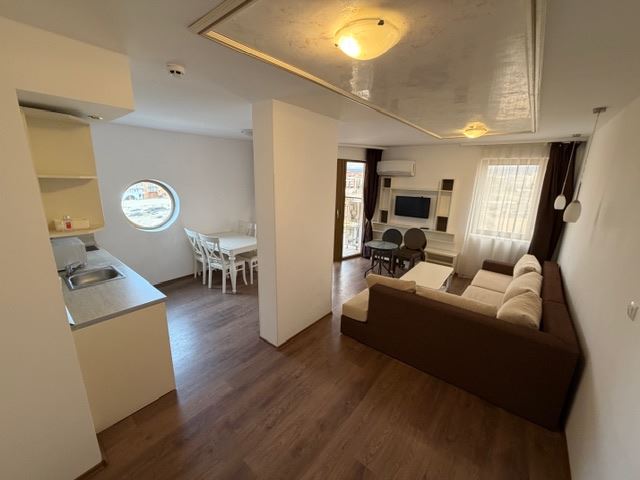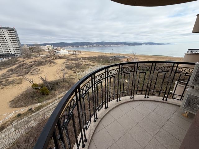 Představujeme luxusní dvoupokojový apartmán o celkové ploše 89,69 m², který se nachází v pátém patře z osmi v moderním komplexu na první linii v Slunečném pobřeží. Nemovitost nabízí nepřerušený výhled na moře, viditelný z prostorných interiérů, což vytváří pocit svobody a komfortu. Apartmán je ideální jako dovolenkový domov, pro celoroční bydlení nebo jako investice s vysokým potenciálem pronájmu, díky výjimečné lokalitě a kvalitě komplexu.
