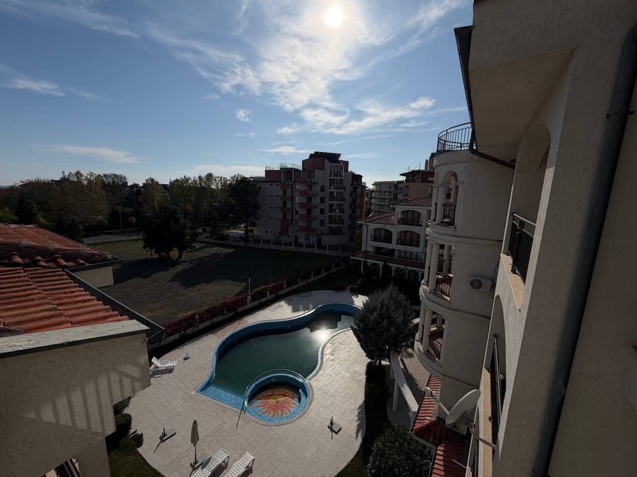 Nabízíme k prodeji světlý a prostorný dvoupokojový apartmán, situovaný v posledním patře dobře udržovaného komplexu v Slunečném pobřeží. Nemovitost má celkovou plochu 85 m², výtah až do patra a krásný výhled na bazén v areálu. Lokalita kombinuje pohodlí a klid, přičemž velké prostory a dvě terasy vytvářejí pocit volnosti a komfortu.