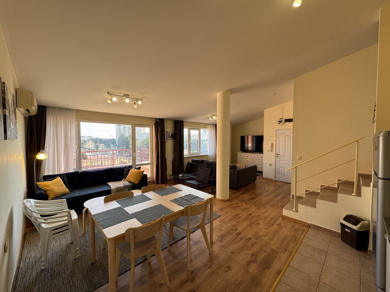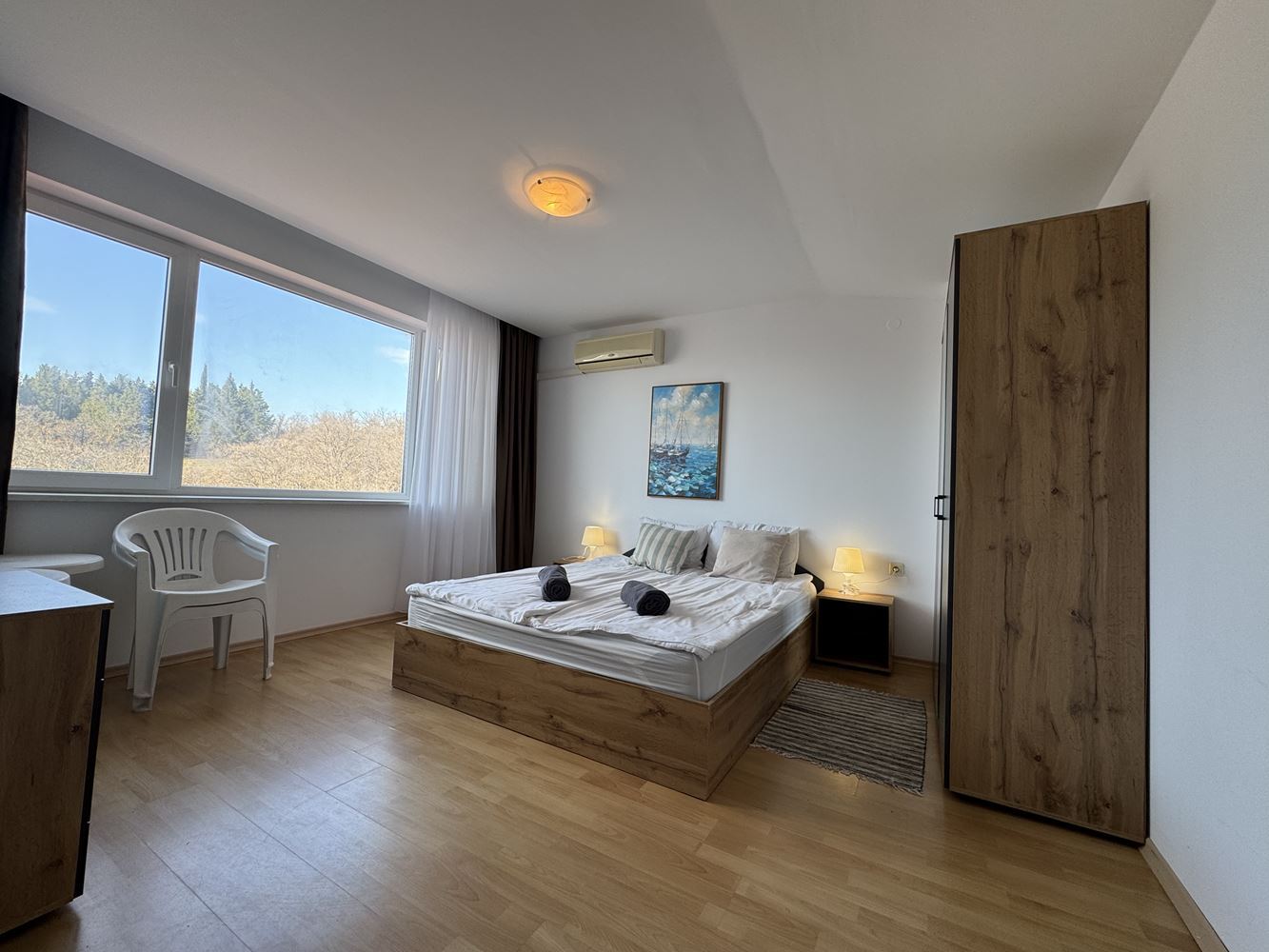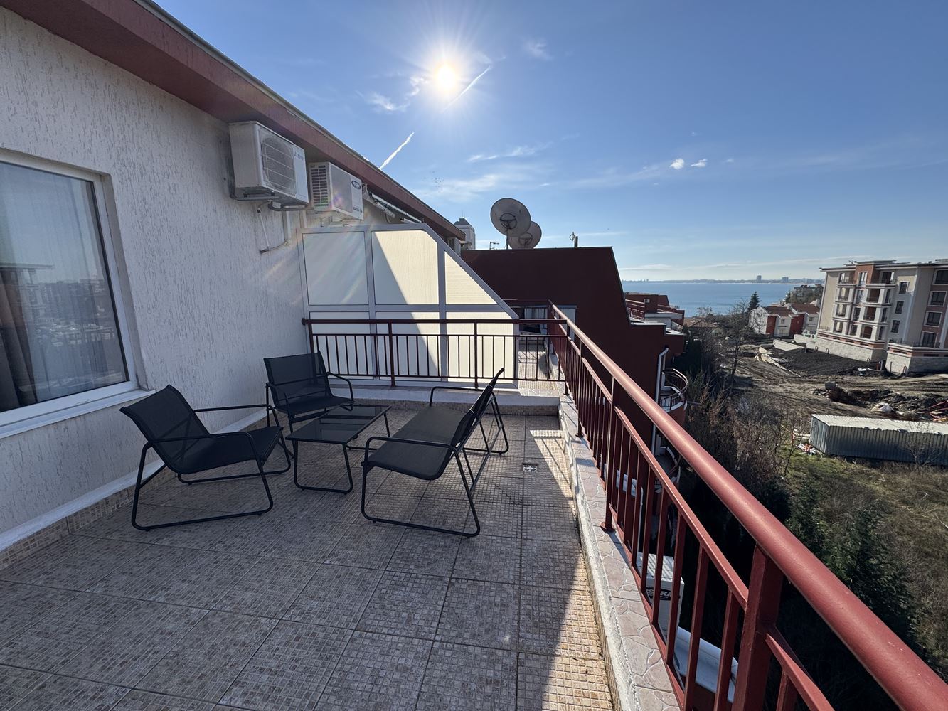 Představujeme luxusní dvoupokojový byt o celkové ploše 120 m², který se nachází ve čtvrtém patře prestižního komplexu v letovisku Sveti Vlas. Byt nabízí úchvatný výhled na moře, který vytváří pocit prostoru, světla a klidu, kombinující komfort moderního bydlení s jedinečným pocitem života u moře.