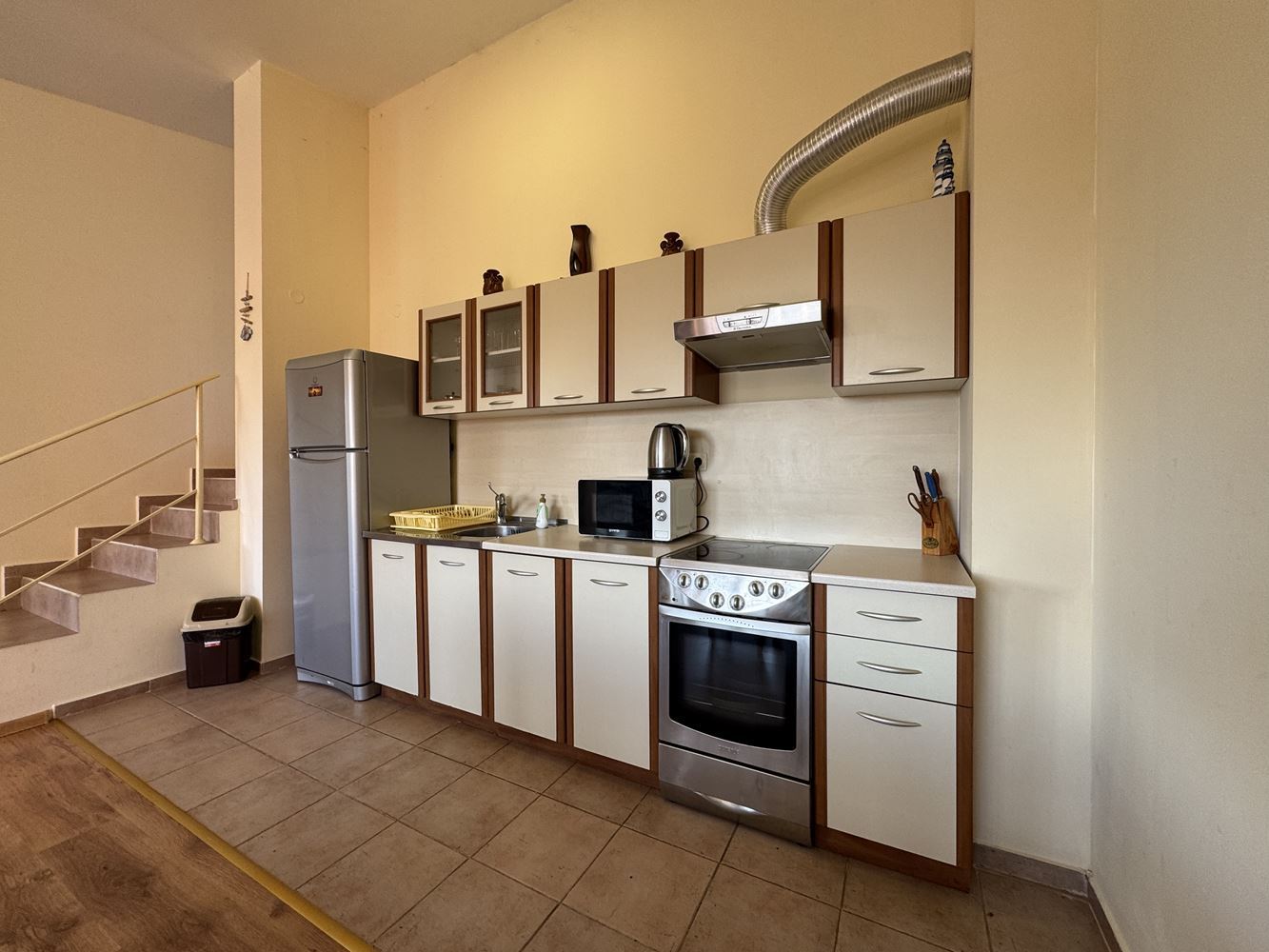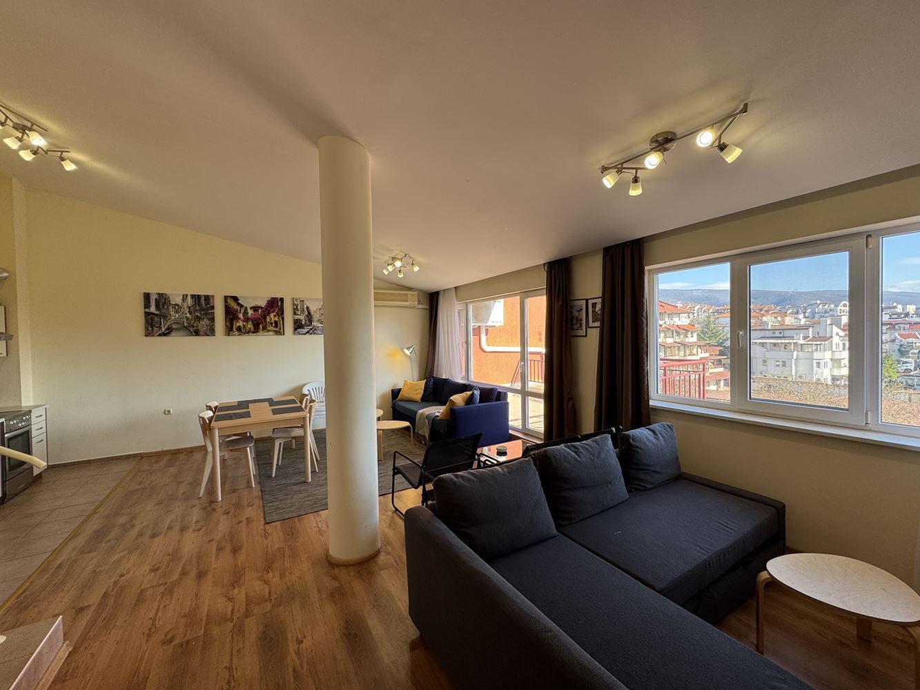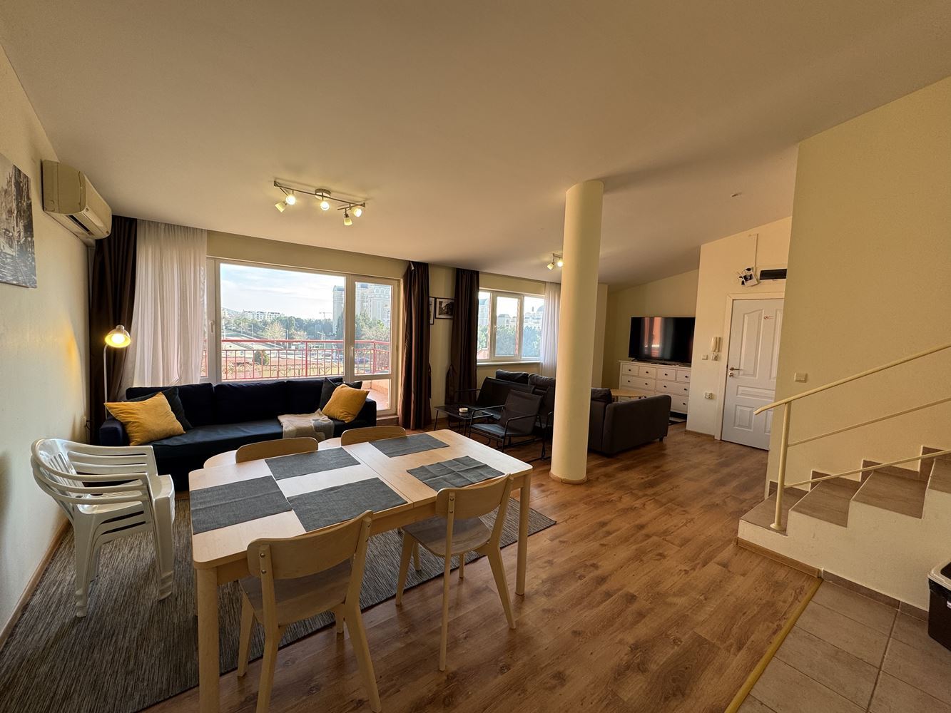 Představujeme luxusní dvoupokojový byt o celkové ploše 120 m², který se nachází ve čtvrtém patře prestižního komplexu v letovisku Sveti Vlas. Byt nabízí úchvatný výhled na moře, který vytváří pocit prostoru, světla a klidu, kombinující komfort moderního bydlení s jedinečným pocitem života u moře.