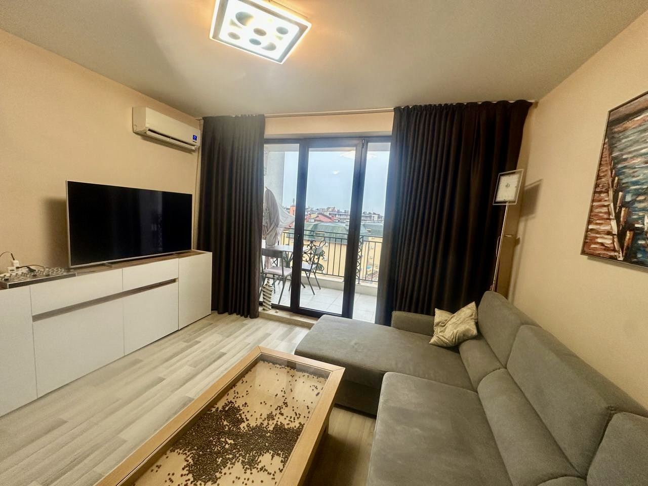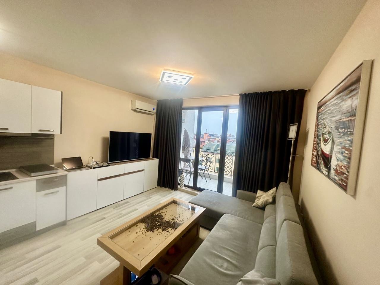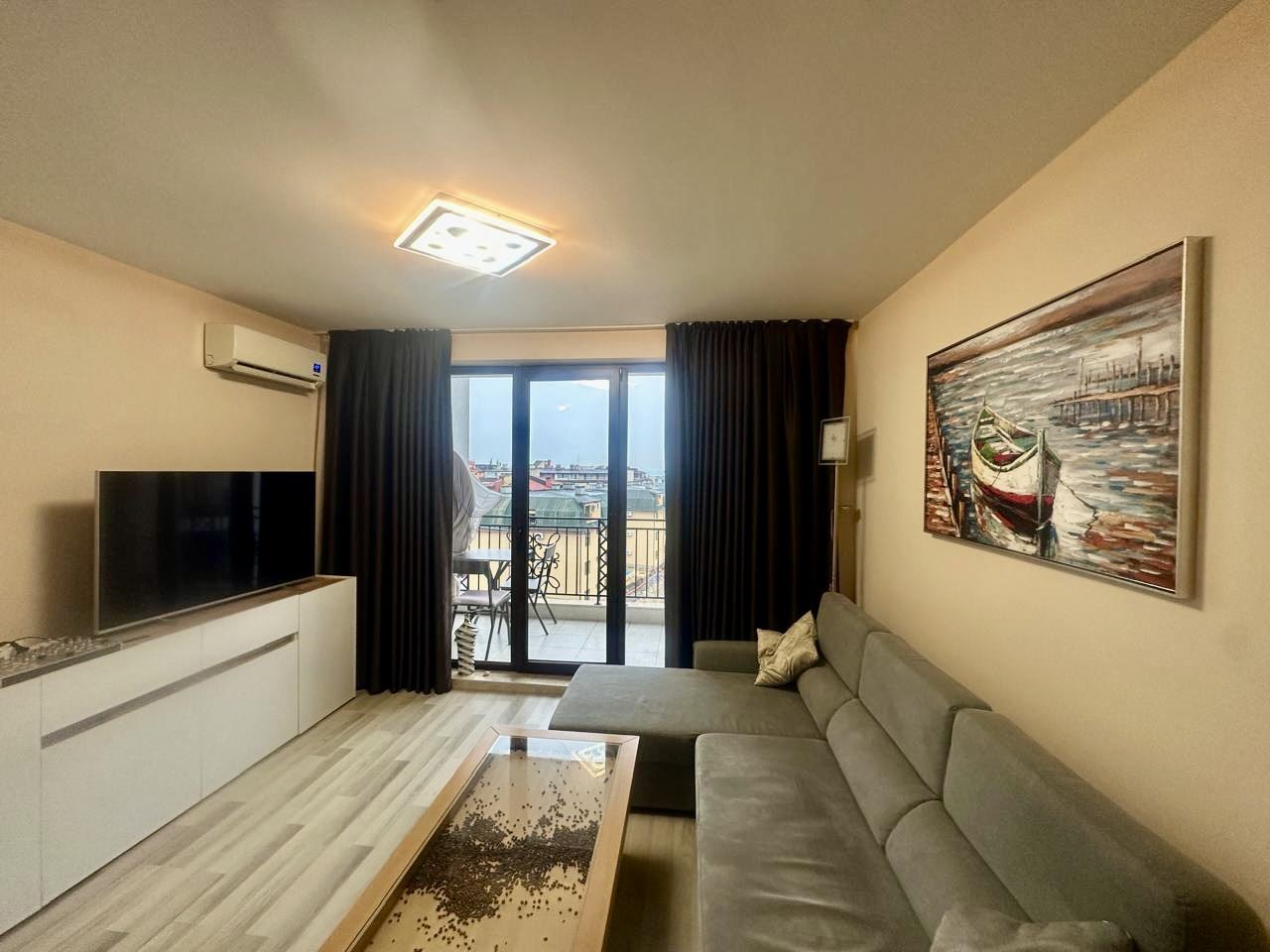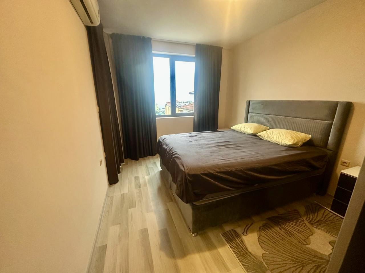 Představujeme vám výjimečný dvouspálňový apartmán o ploše 91 m², který se nachází v pátém patře prestižního komplexu „Apollon“ v Nesebaru. Nemovitost zaujme neuvěřitelným výhledem na moře, který se vám otevírá každý den – panorama přinášející pocit svobody, prostoru a klidu. Byt má výborné funkční uspořádání, které spojuje komfort a pohodlí. Prostorný obývací pokoj s velkou kuchyní vytváří pocit světla a vzdušnosti a poskytuje dostatek místa jak pro jídelní část, tak pro útulný kout k odpočinku. Dvě velké ložnice zajišťují klid a osobní prostor pro celou rodinu nebo hosty. Nemovitost disponuje dvěma koupelnami s toaletou, což je mimořádně praktické řešení pro větší domácnost, a také dvěma terasami, z nichž si můžete vychutnat krásný výhled na moře a zelené plochy komplexu. U vstupu se nachází pohodlná chodba, která doplňuje funkčnost bytu. Byt je plně zařízený, komfortní a připravený k nastěhování, přičemž nábytek a dispozice byly vybrány s ohledem na pohodlný každodenní život nebo bezstarostnou dovolenou. Prostory jsou světlé a dobře organizované, vytvářející pocit domova, kde má vše své místo.