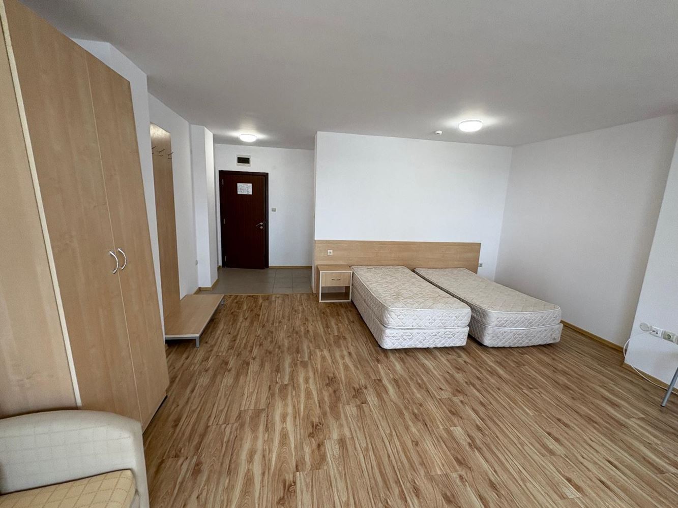 Představujeme světlé a prostorné studio o celkové ploše 56 m², nacházející se ve druhém patře udržovaného komplexu v Slunečném pobřeží. Nemovitost zaujme otevřeným prostorem, který umožňuje pohodlné rozdělení na relaxační a jídelní zónu, a také přístup na útulný balkon s výhledem na bazén – ideální místo na ranní kávu nebo večerní odpočinek. Studio má jednu koupelnu a je vynikající volbou jako rekreační bydlení, hlavní byt u moře nebo investice k pronájmu.