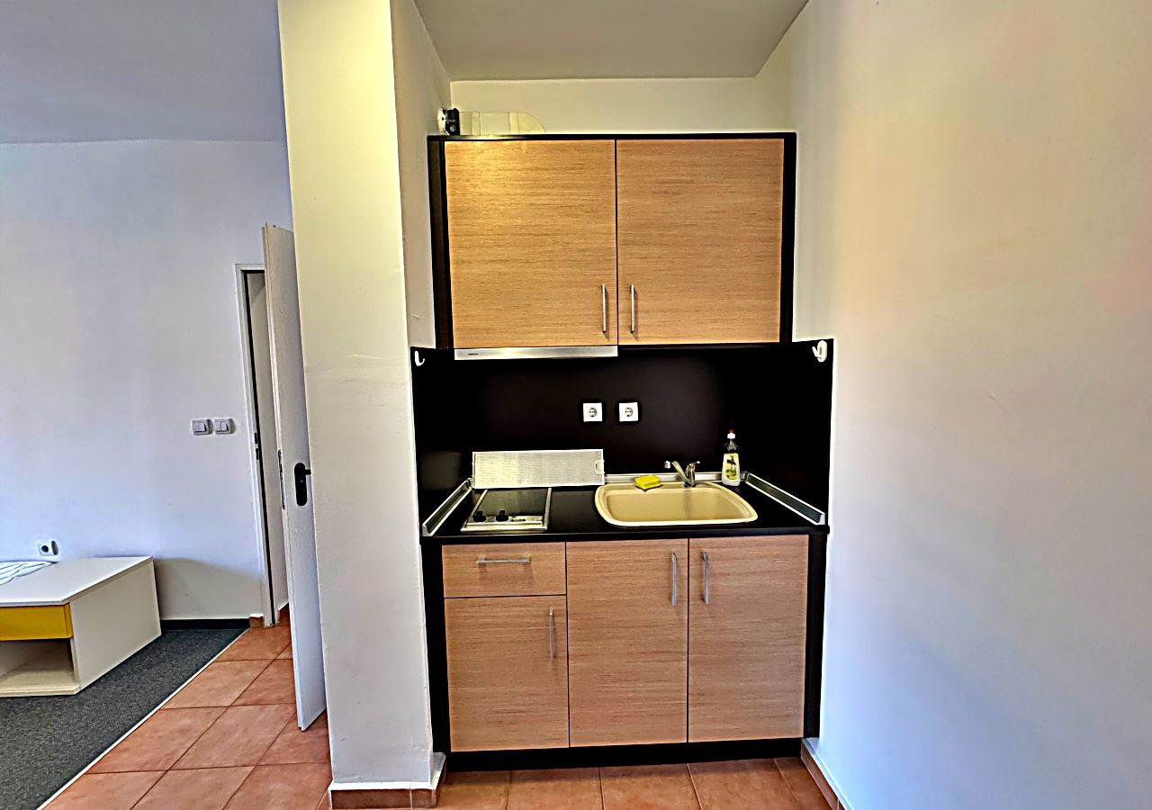 Byt zaujme prostornou a světlou obytnou částí, harmonicky propojenou s kuchyňským koutem a spacím prostorem, čímž vzniká otevřený prostor plný světla a útulnosti. Interiér umožňuje flexibilní zařízení podle individuálních preferencí, zatímco velká okna zajišťují přirozené osvětlení a pocit prostornosti. Koupelna je provedena v moderním stylu a poskytuje pohodlí, funkčnost i estetiku.